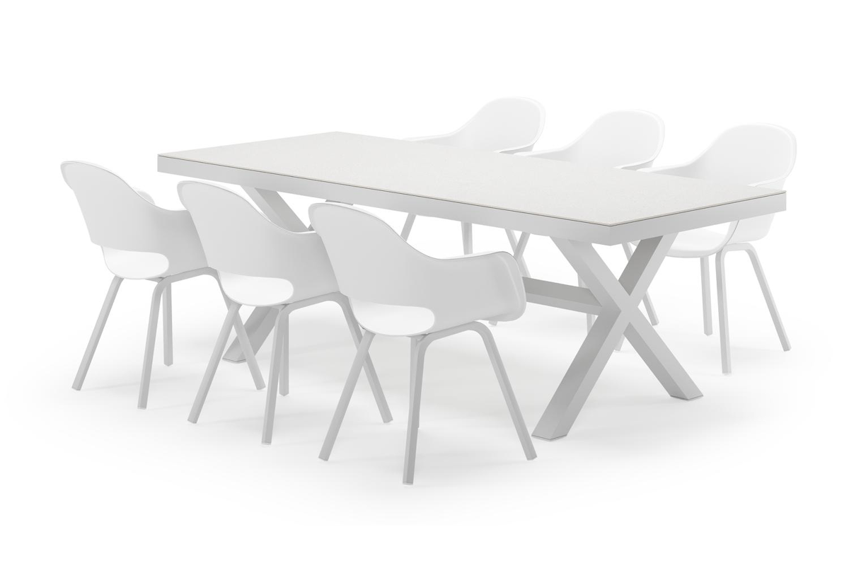 De Artena stoel heeft een uniek design dankzij de opening in de kuip. Het gebogen stoelframe is gemaakt uit roestvrij aluminium. De kuip met armleuningen is gemaakt uit stevige kunststof, een synthetisch en onderhoudsvriendelijk materiaal.