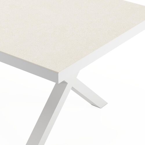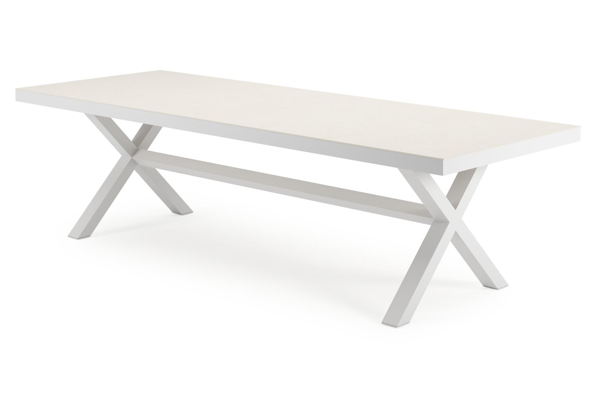 Reza tuintafel rechthoekig in wit aluminium en sintered stone Crema minerale - L 270 x B 100 x H 73.5 cm | Exterioo