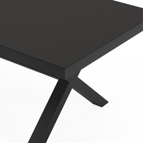 Reza tuintafel rechthoekig in zwart aluminium en sintered stone Notte minerale - L 220 x B 92 x H 73.5 cm | Exterioo