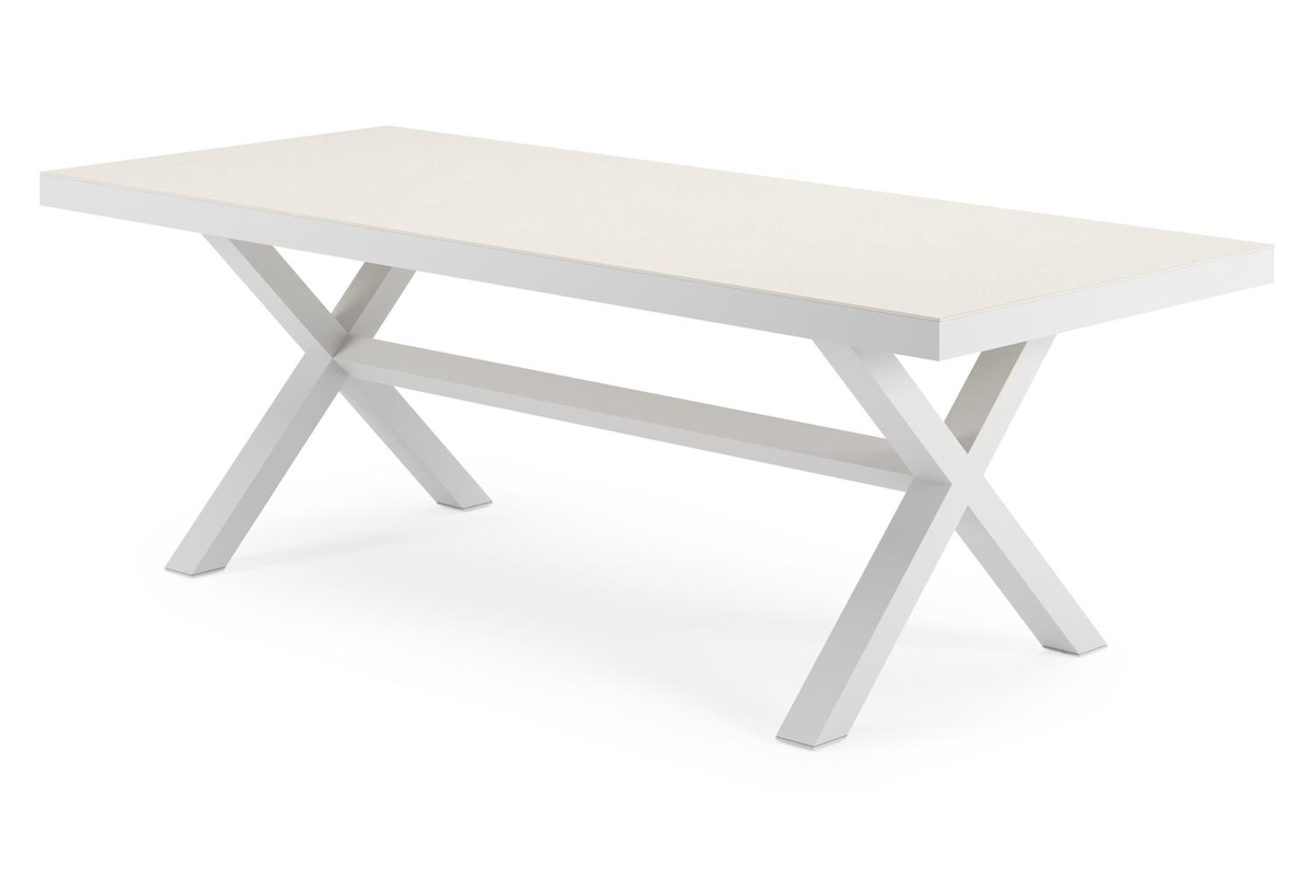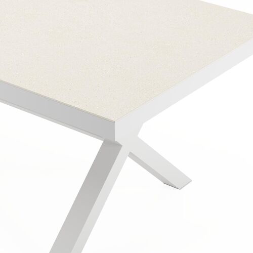 Reza tuintafel rechthoekig in wit aluminium en sintered stone Crema minerale - L 220 x B 92 x H 73.5 cm | Exterioo