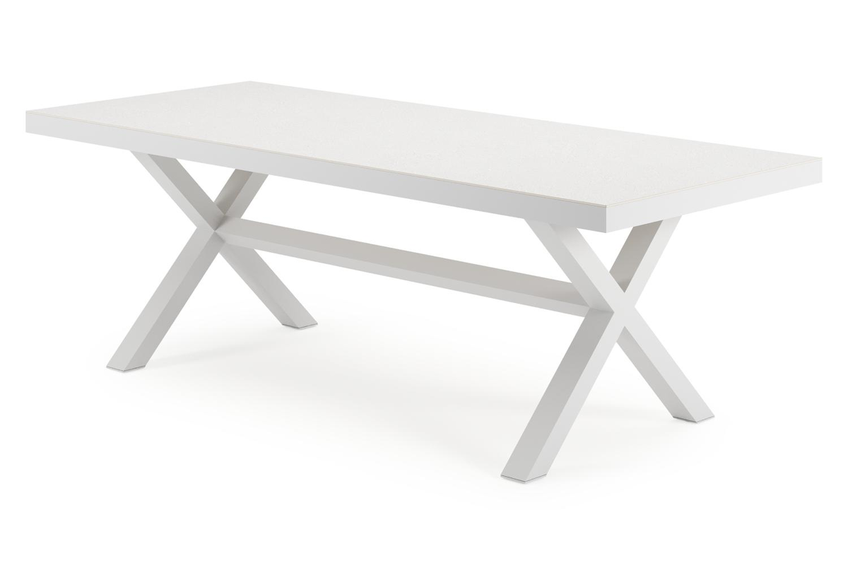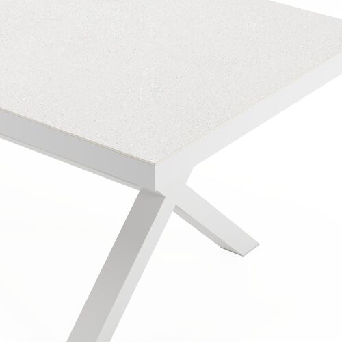 Reza tuintafel rechthoekig in wit aluminium en sintered stone Topo minerale - L 220 x B 92 x H 73.5 cm | Exterioo