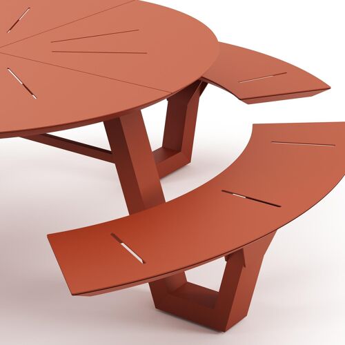 Rondino picknicktafel rond in roestbruin aluminium - Dia. 236 x H 71.5 cm | Exterioo