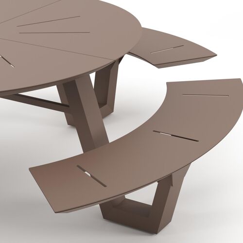 Rondino picknicktafel in taupe aluminium - Dia. 236 x H 71.5 cm | Exterioo