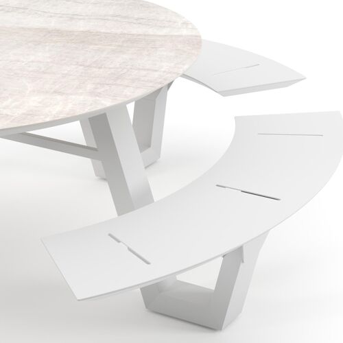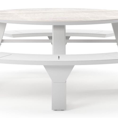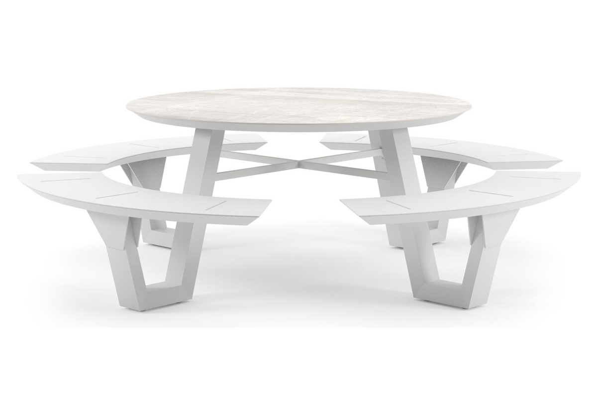 Rondino picknicktafel rond in wit aluminium en volkeramiek Taj Mahal - Dia. 236 x H 71.5 cm | Exterioo
