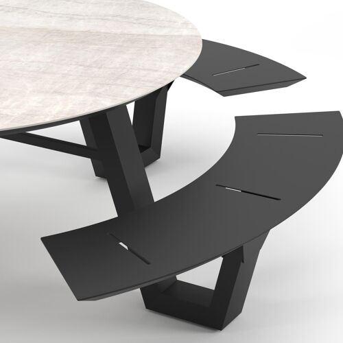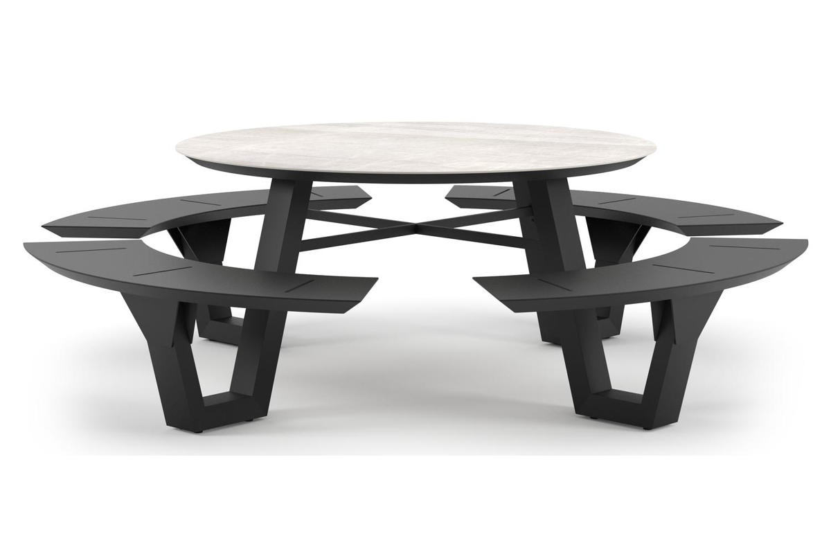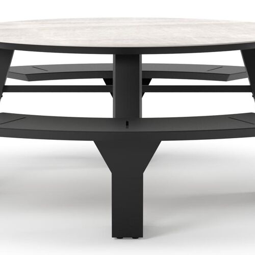 Rondino picknicktafel rond in zwart aluminium en volkeramiek Taj Mahal - Dia. 236 x H 71.5 cm | Exterioo