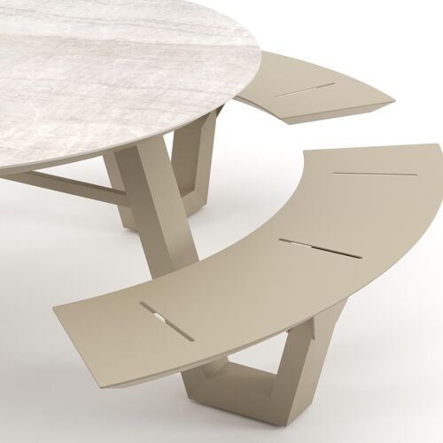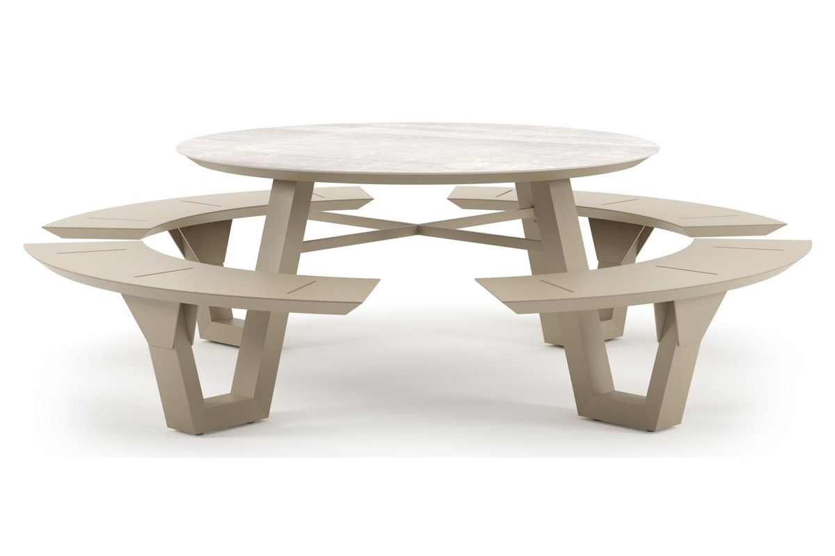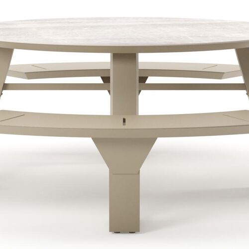 Rondino picknicktafel rond in beige aluminium en volkeramiek Taj Mahal - Dia. 236 x H 71.5 cm | Exterioo