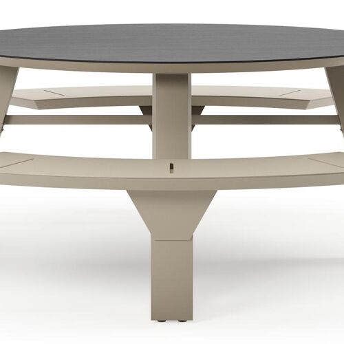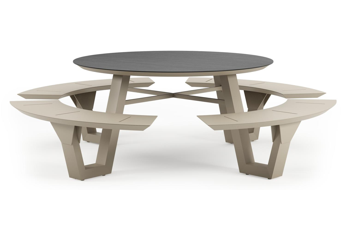 Rondino picknicktafel rond in beige aluminium en volkeramiek Basalt Black - Dia. 148 x H 71.5 cm | Exterioo