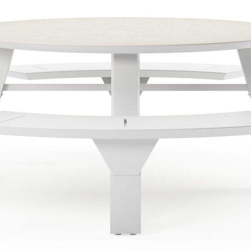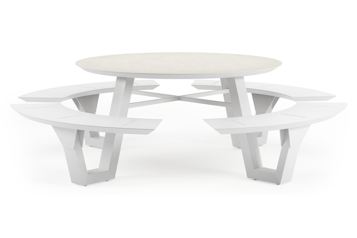 Rondino picknicktafel in wit aluminium en volkeramiek shilin tafelblad - Ø 236 x H 71,5 cm | Exterioo