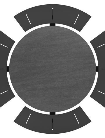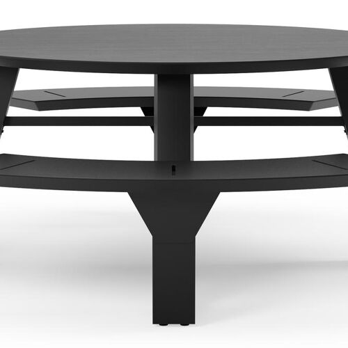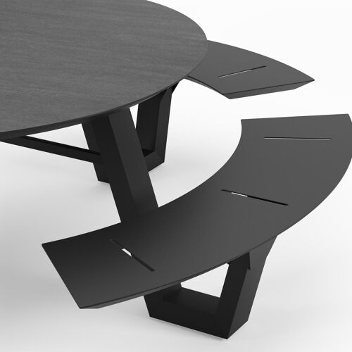 Rondino picknicktafel in zwart aluminium en volkeramiek basalt black tafelblad - Ø 236 x H 71,5 cm | Exterioo