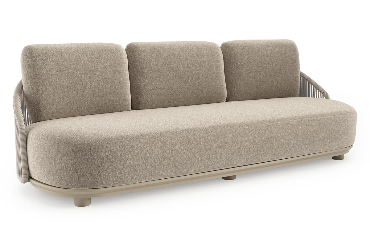 Vadelo loungebank in beige aluminium en beige verticaal geweven ronde rope met chartres pewter all weather sunbrella® luxe kussen | Exterioo