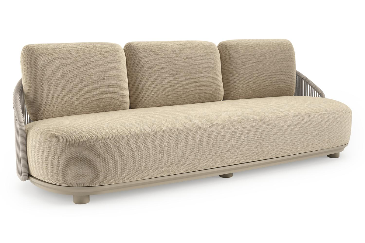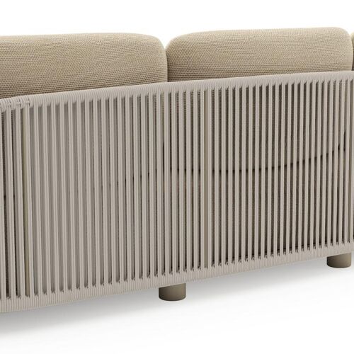 Vadelo loungebank in beige aluminium en beige verticaal geweven ronde rope met althea camel all weather cosytica kussen | Exterioo