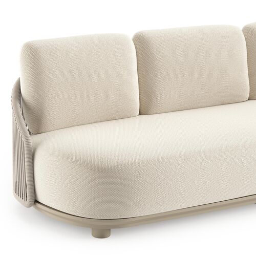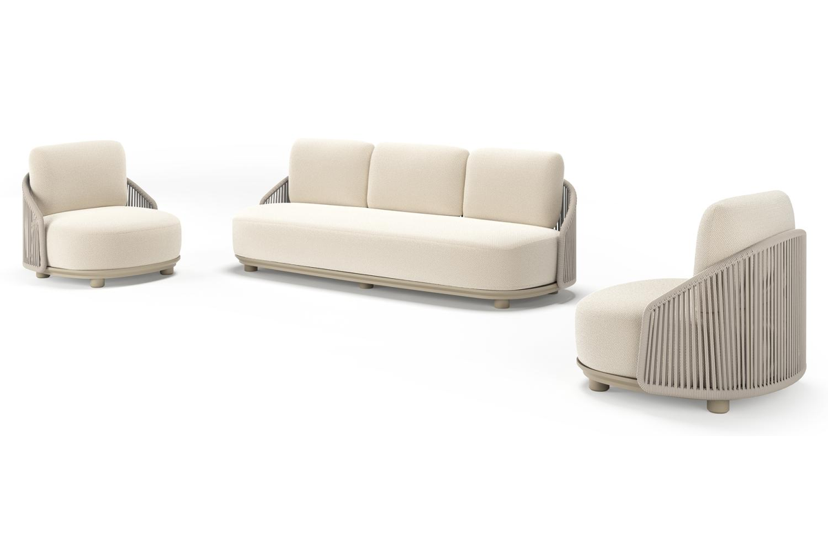 Vadelo loungeset in beige aluminium en beige verticaal geweven ronde rope met althea off white all weather cosytica kussen | Exterioo
