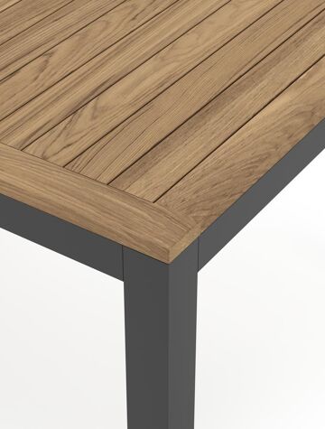 Een tafelblad uit teak staat gelijk aan bijzondere kwaliteit en natuurlijk design. Teak is een kwalitatieve houtsoort gekenmerkt door zijn hardheid. Aangezien hout leeft, kan de structuur of kleur licht anders zijn dan op het beeld weergegeven.