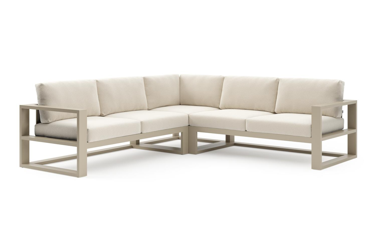 Verato loungehoek in beige aluminium met althea off white all weather cosytica kussen | Exterioo