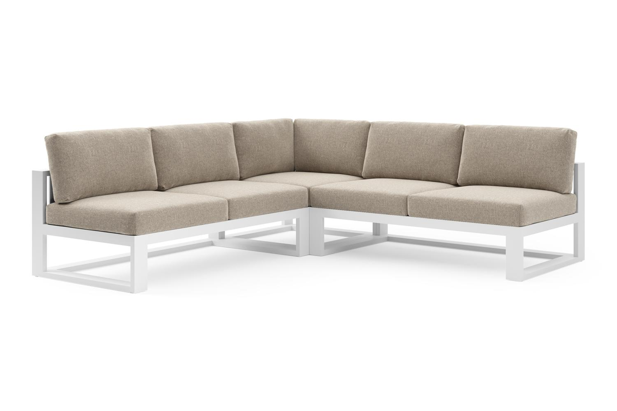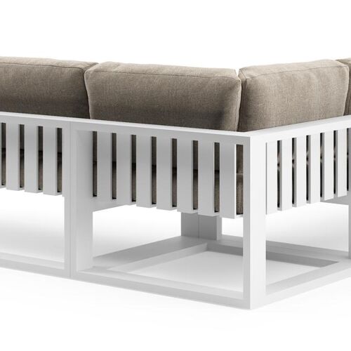 Verato loungehoek in wit aluminium met chartres pewter all weather sunbrella® luxe kussen | Exterioo