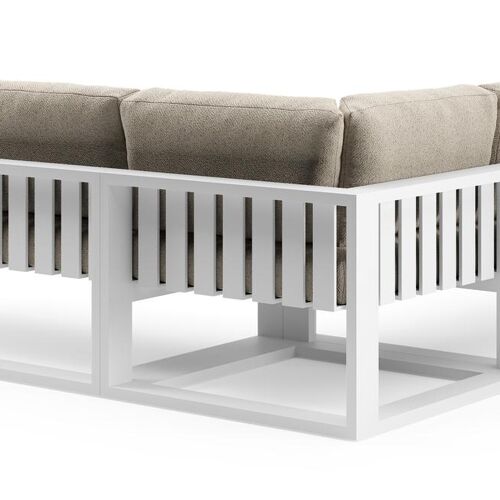 Verato loungehoek in wit aluminium met bora desert all weather cosytica kussen | Exterioo