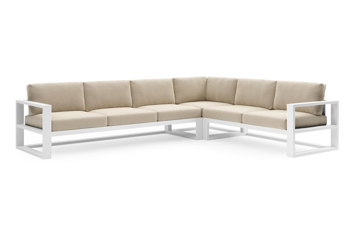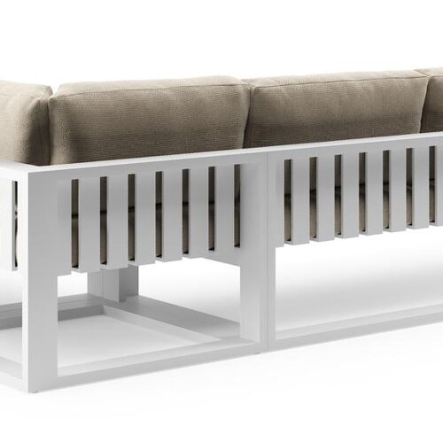 Verato loungehoek in wit aluminium met althea chalk all weather cosytica kussen | Exterioo