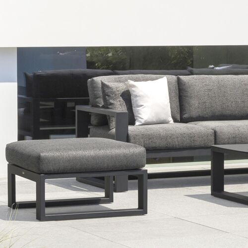 Verato poef in zwart aluminium met chartres drizzle all weather sunbrella® luxe kussen | Exterioo