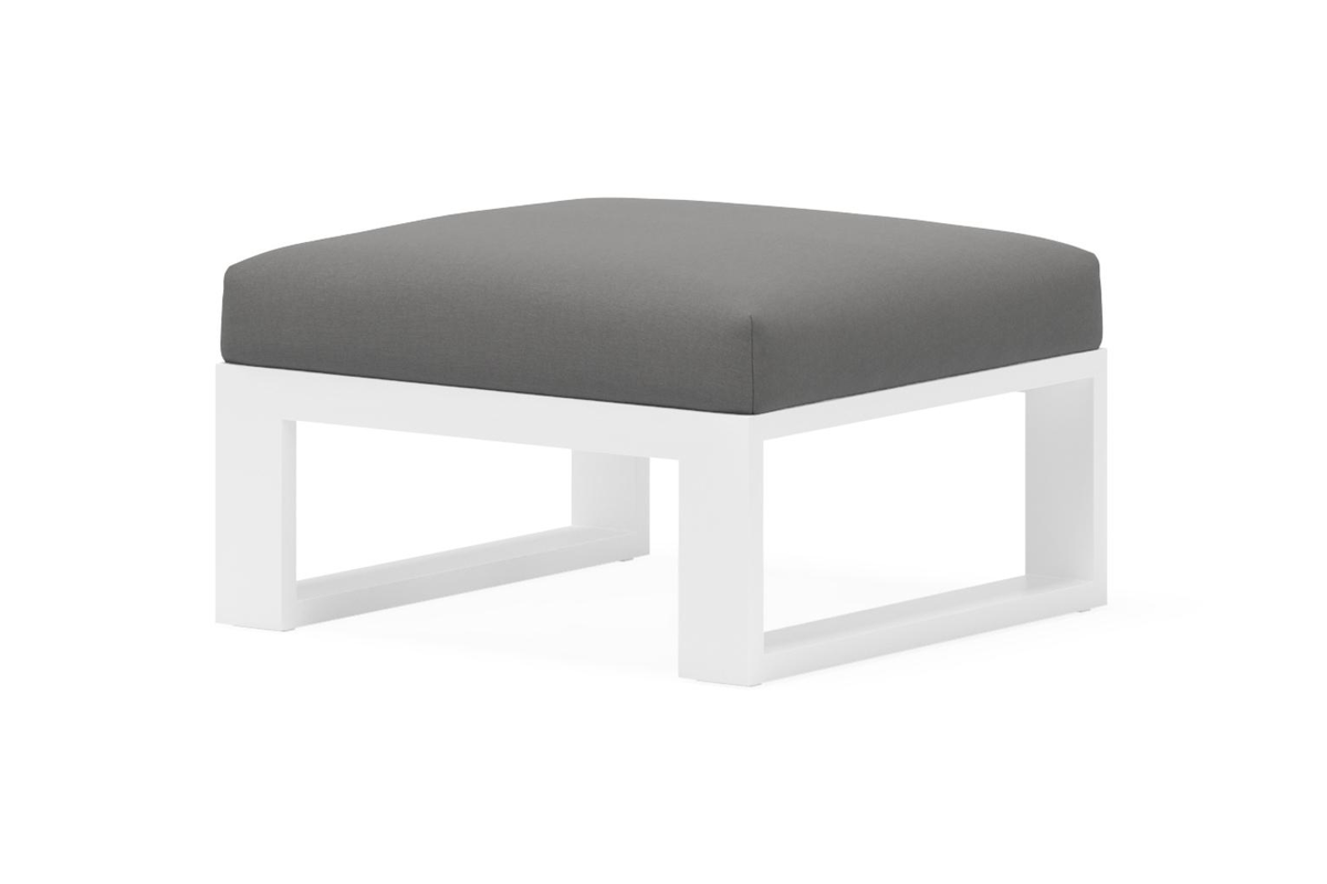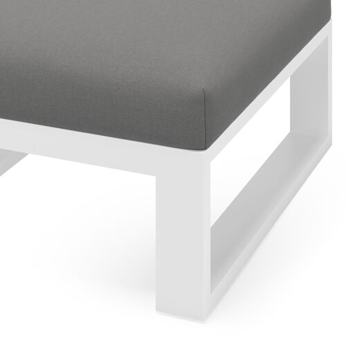 Verato poef in wit aluminium met natte charcoal chine all weather sunbrella® luxe kussen | Exterioo