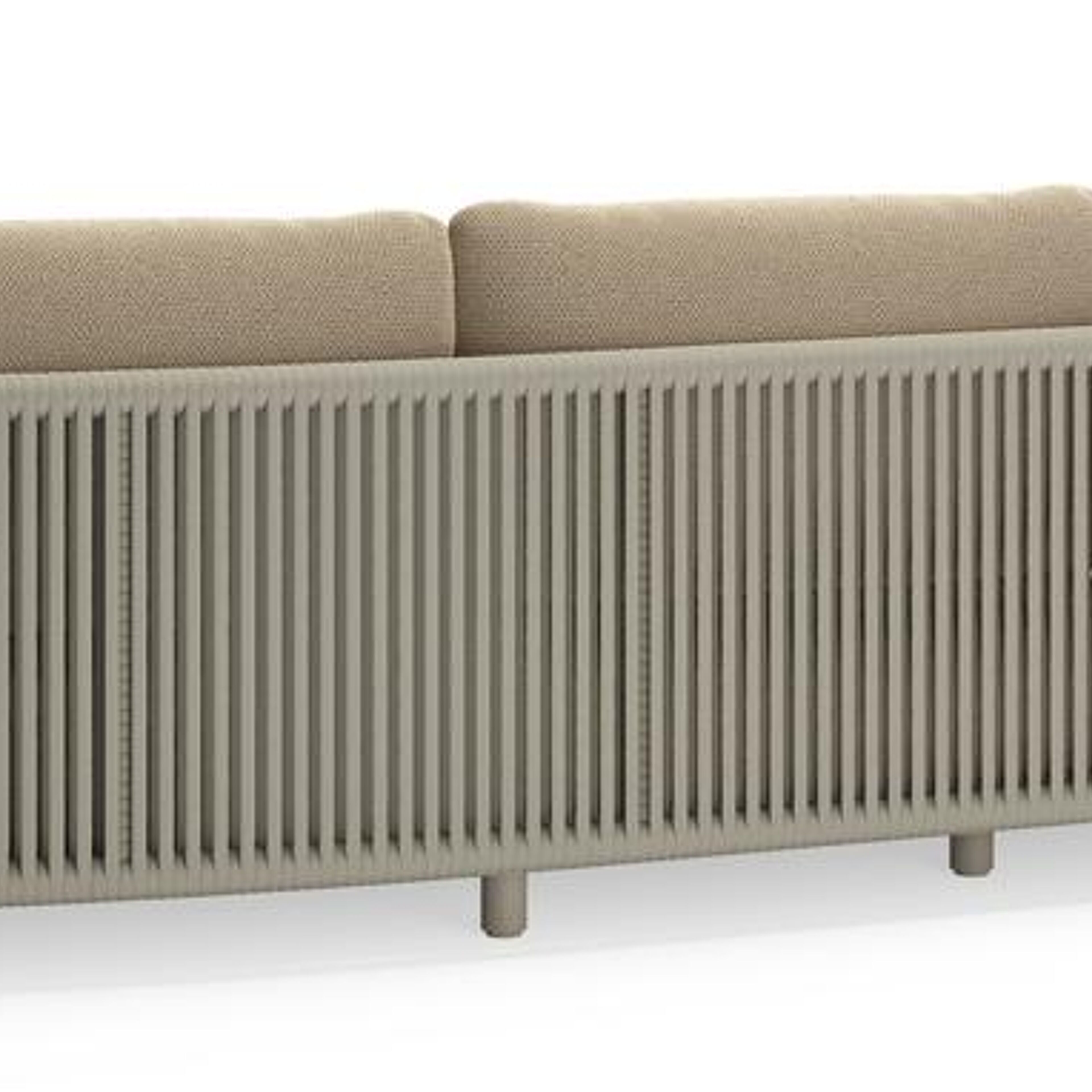 Canapé de jardin Lomano en aluminium beige et corde luxe plate tissée verticalement beige et coussins en all weather cosytica Althea Camel | Exterioo mobilier de jardin