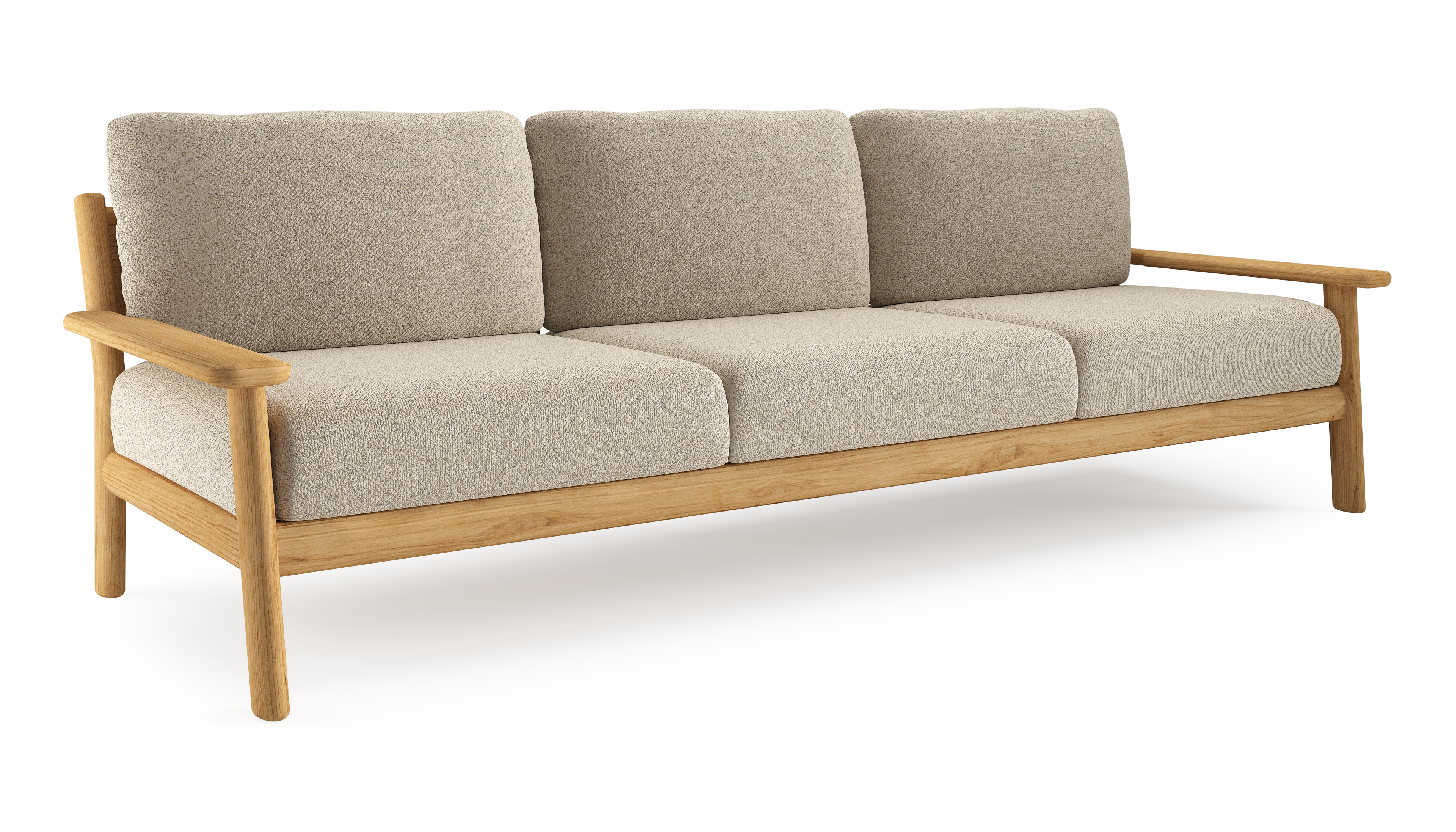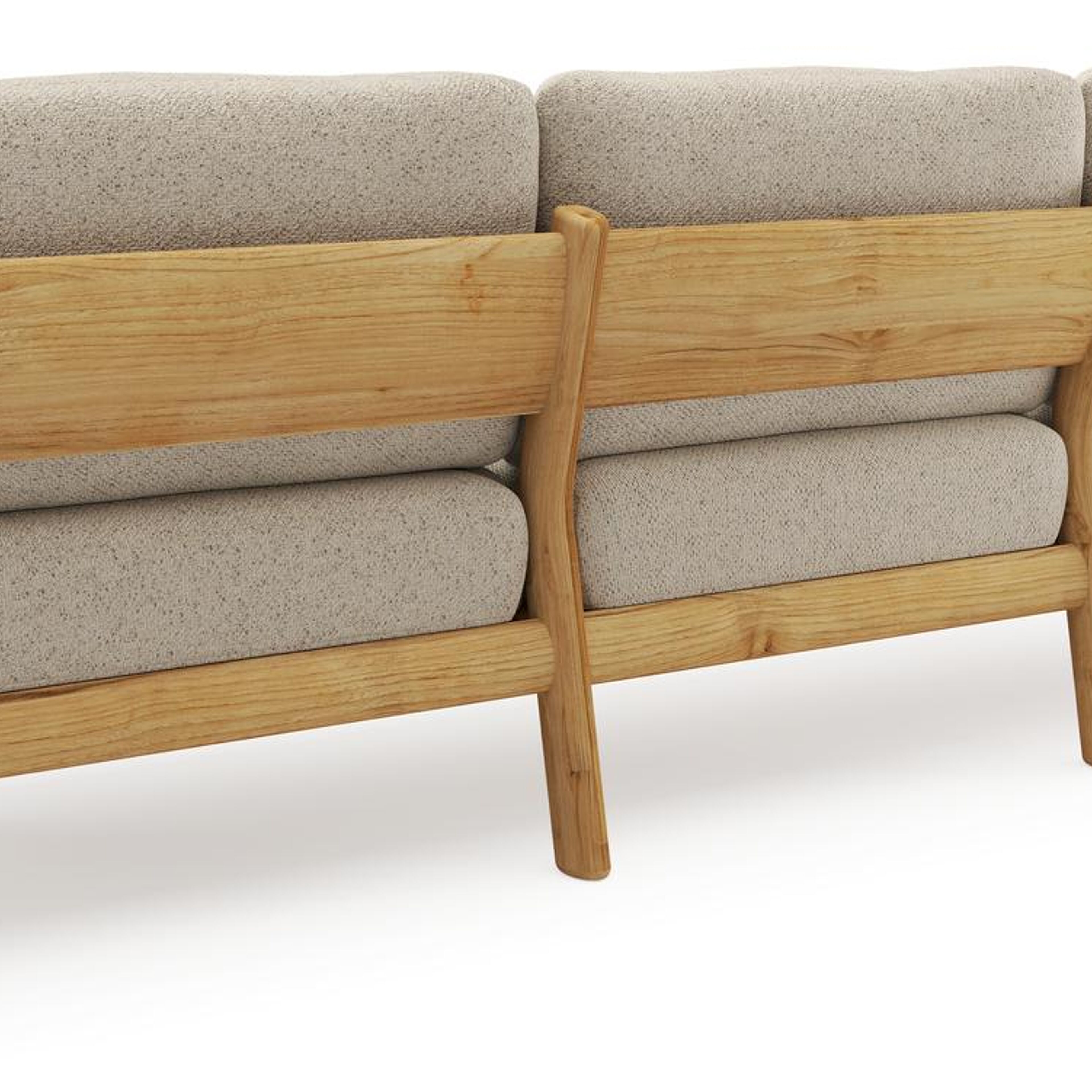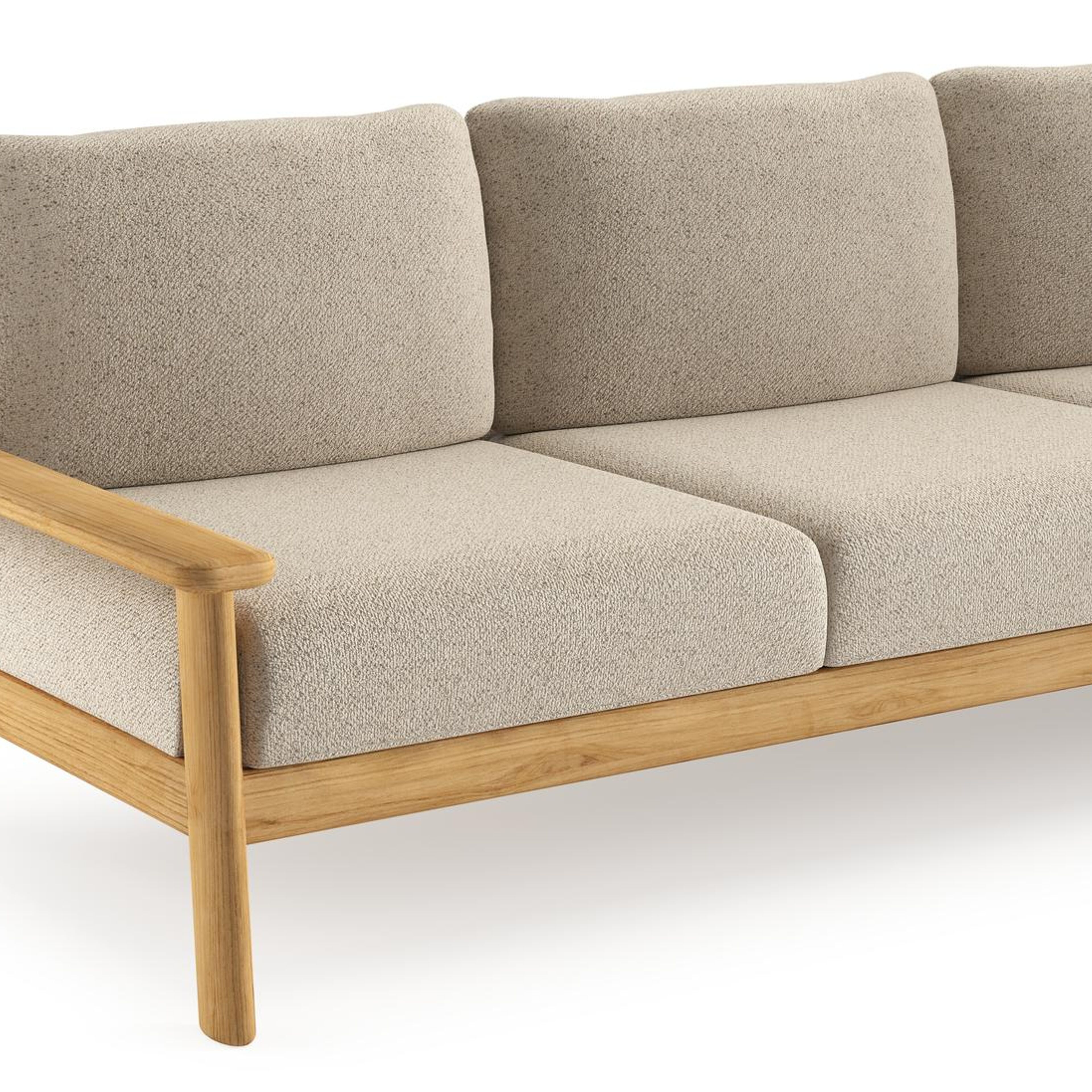 Canapé de jardin Amaro en teck et coussins en all weather cosytica bora desert | Exterioo mobilier de jardin