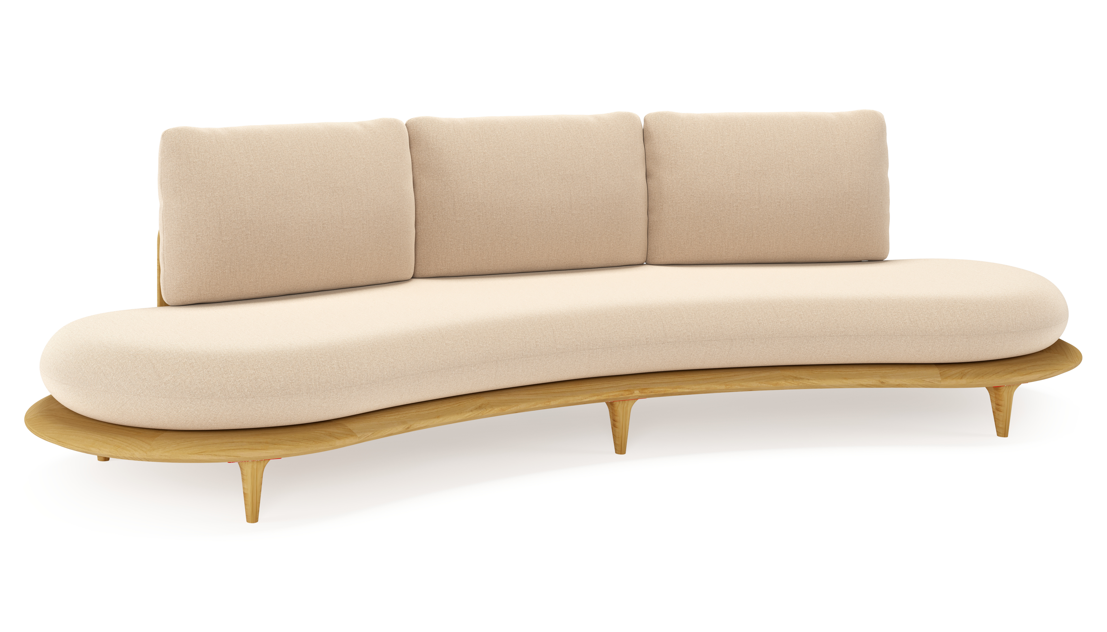 Canape de jardin Bomero en teck et coussins en all weather sunbrella® luxe natte heather beige | Exterioo mobilier de jardin