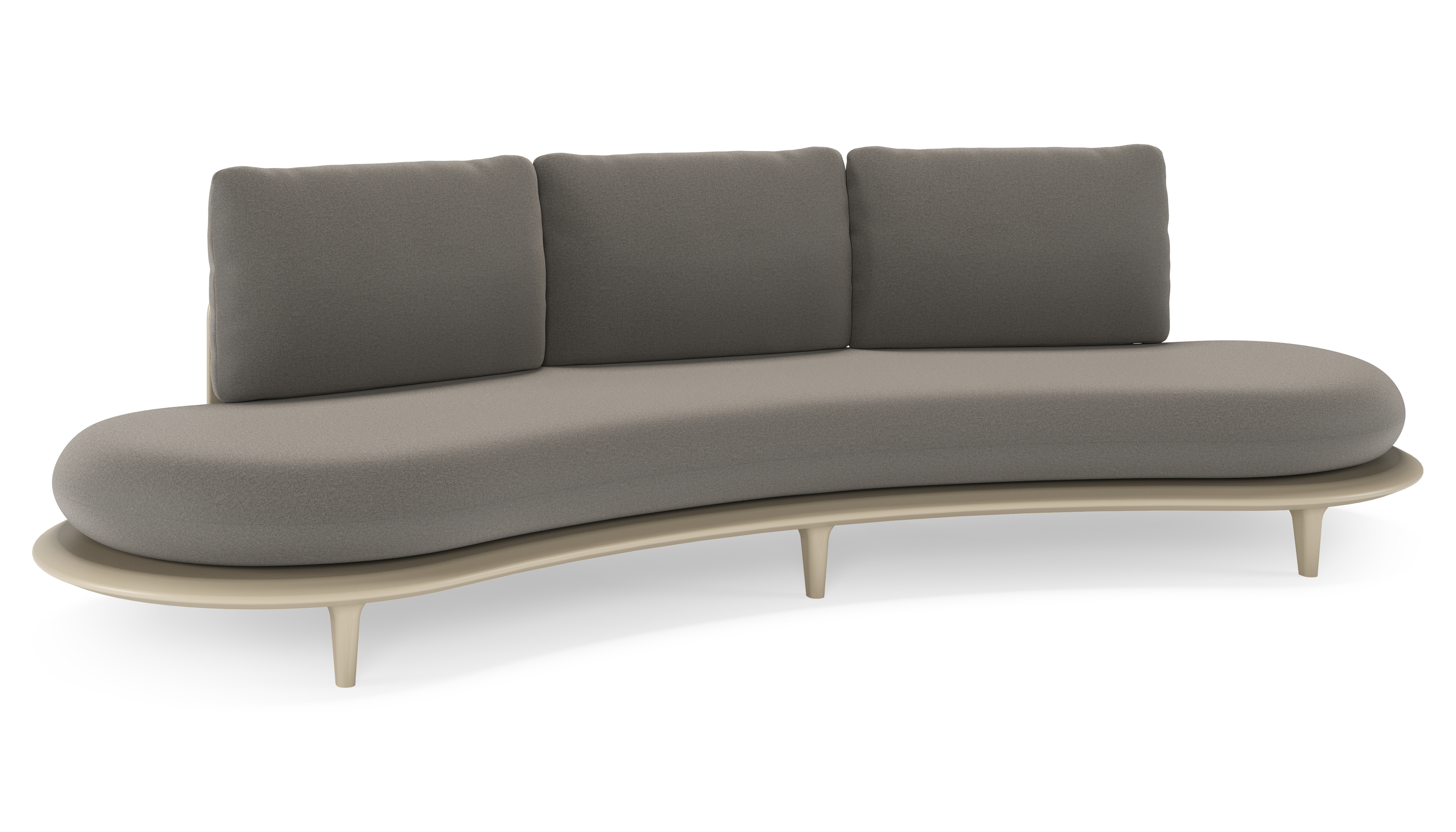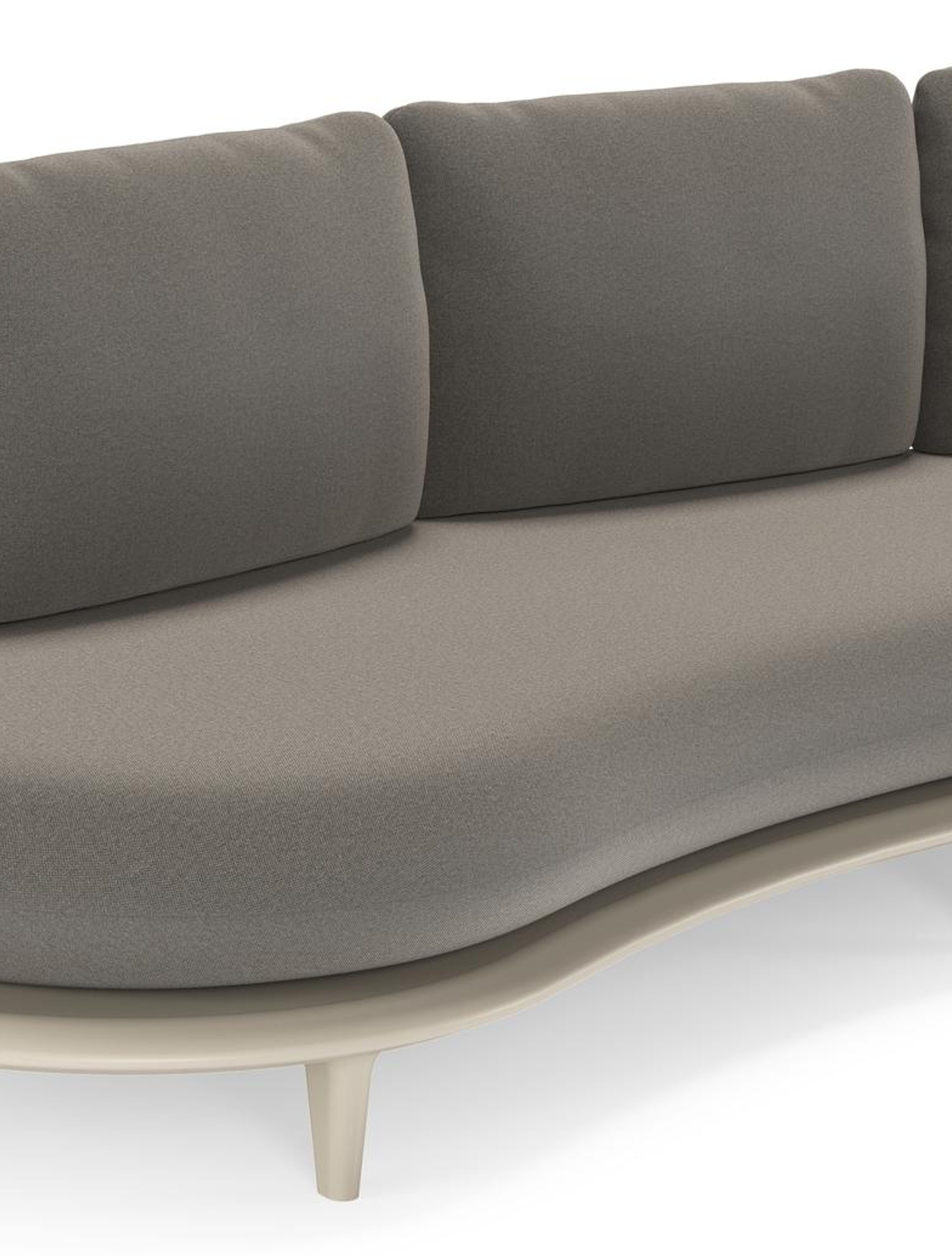 Canape de jardin Bomero en aluminium beige et coussins en all weather sunbrella® luxe natte dark taupe | Exterioo mobilier de jardin