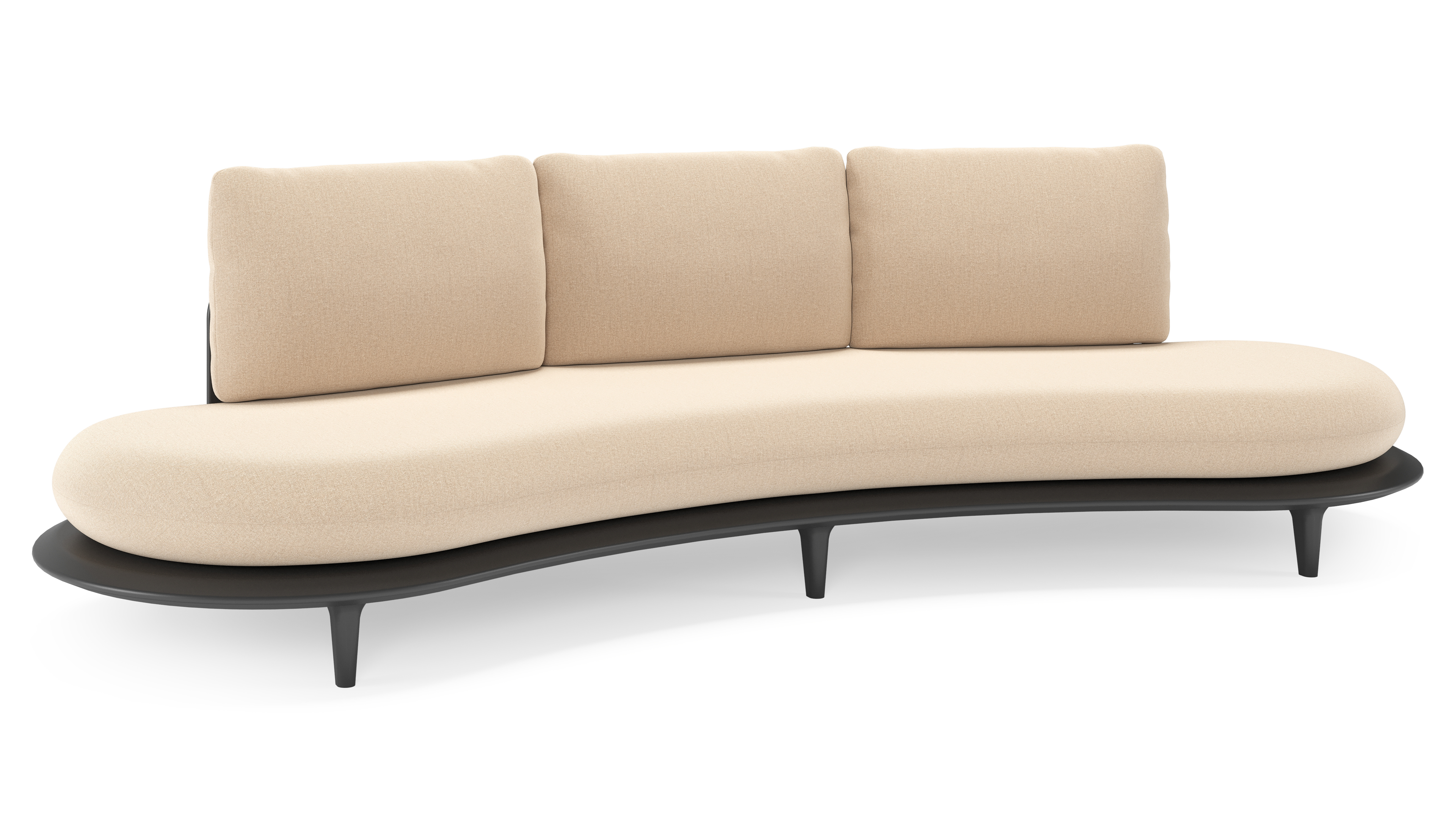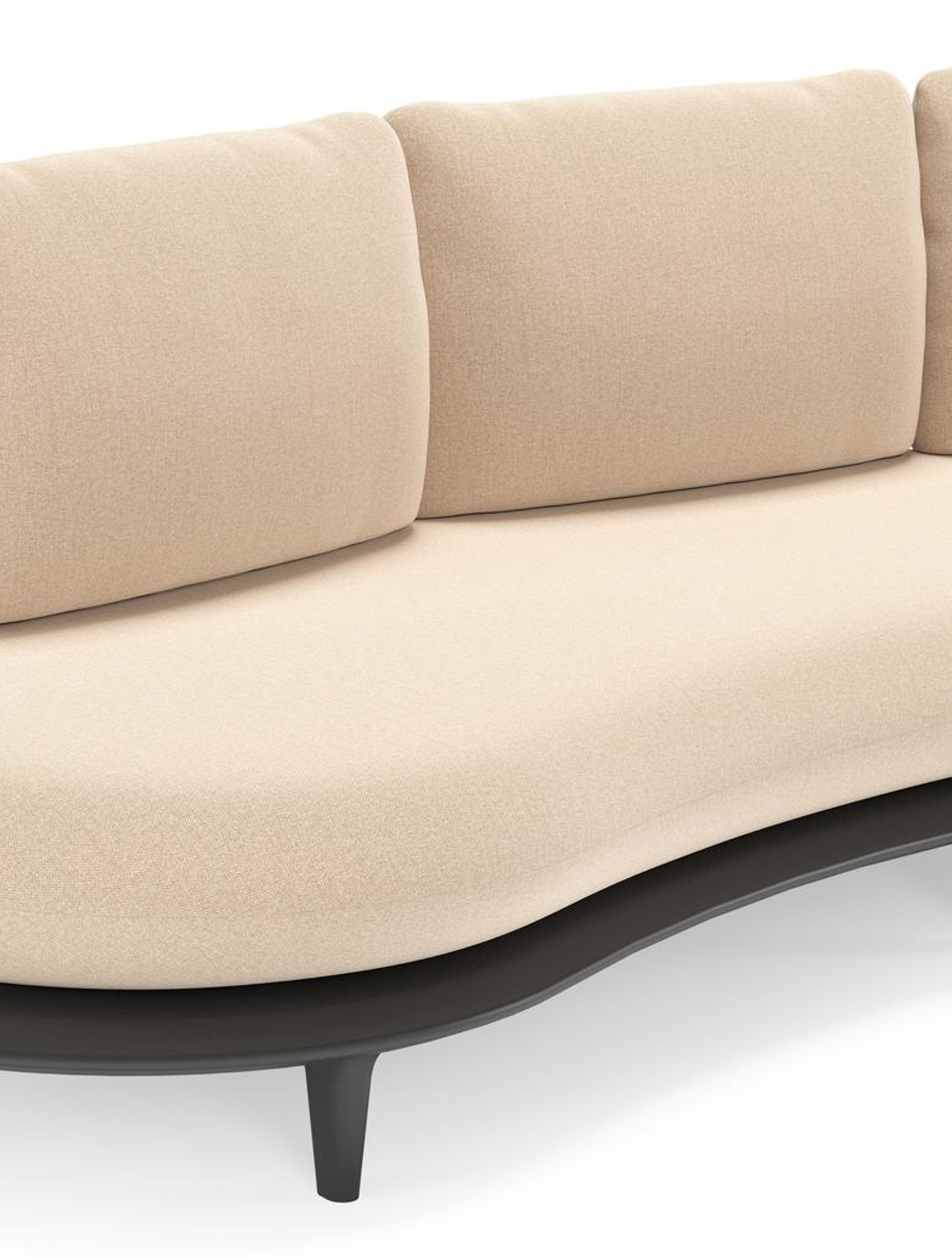Canape de jardin Bomero en aluminium noir et coussins en all weather sunbrella® luxe natte heather beige | Exterioo mobilier de jardin