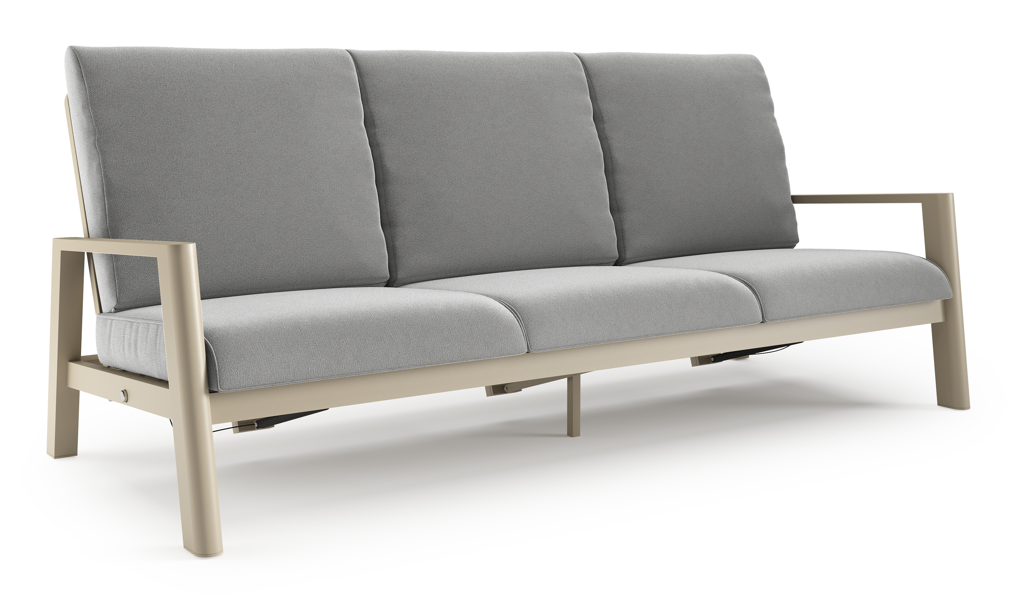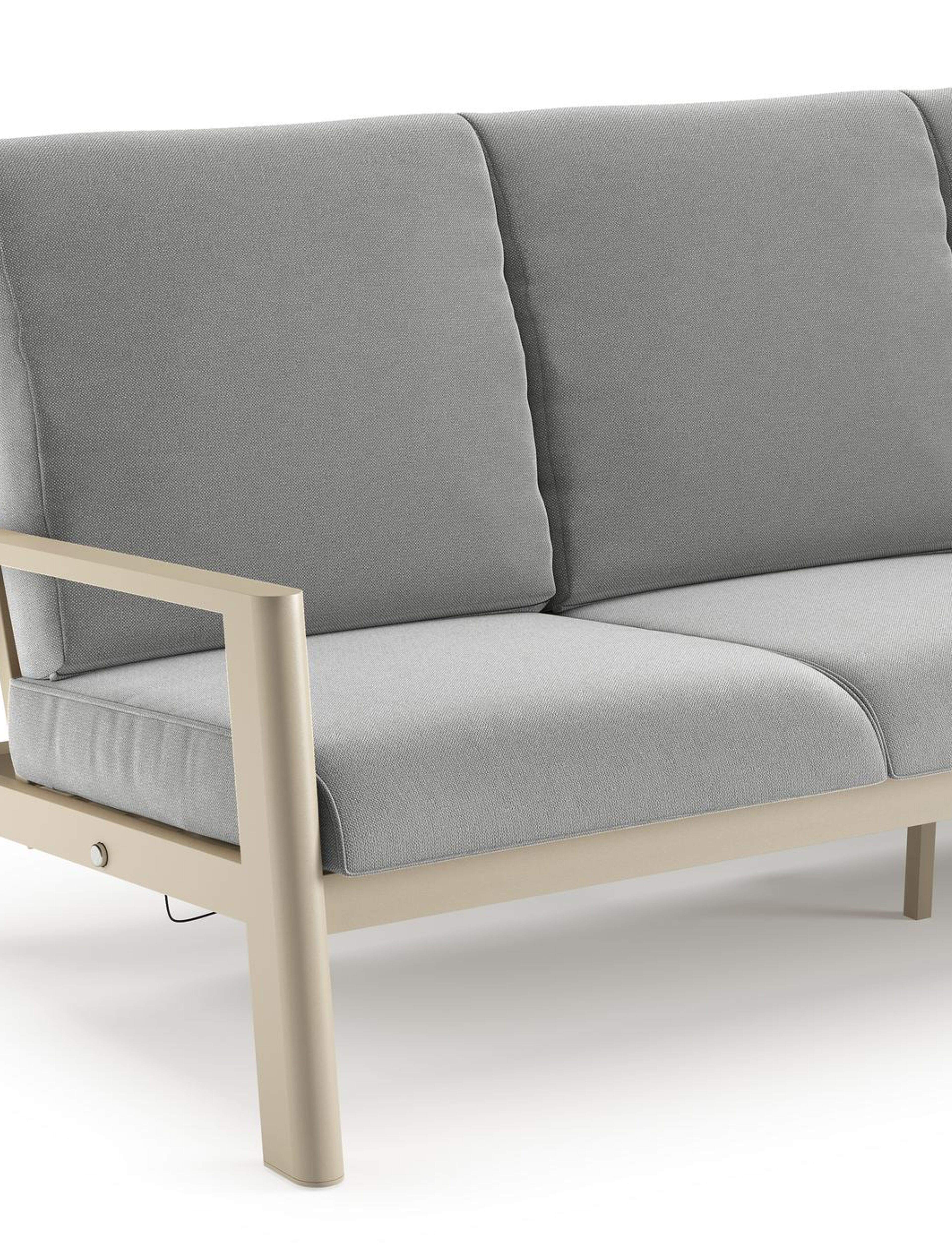 Canapé de jardin Cirello en aluminium beige et coussins en all weather sunbrella® luxe savane grey | Exterioo mobilier de jardin
