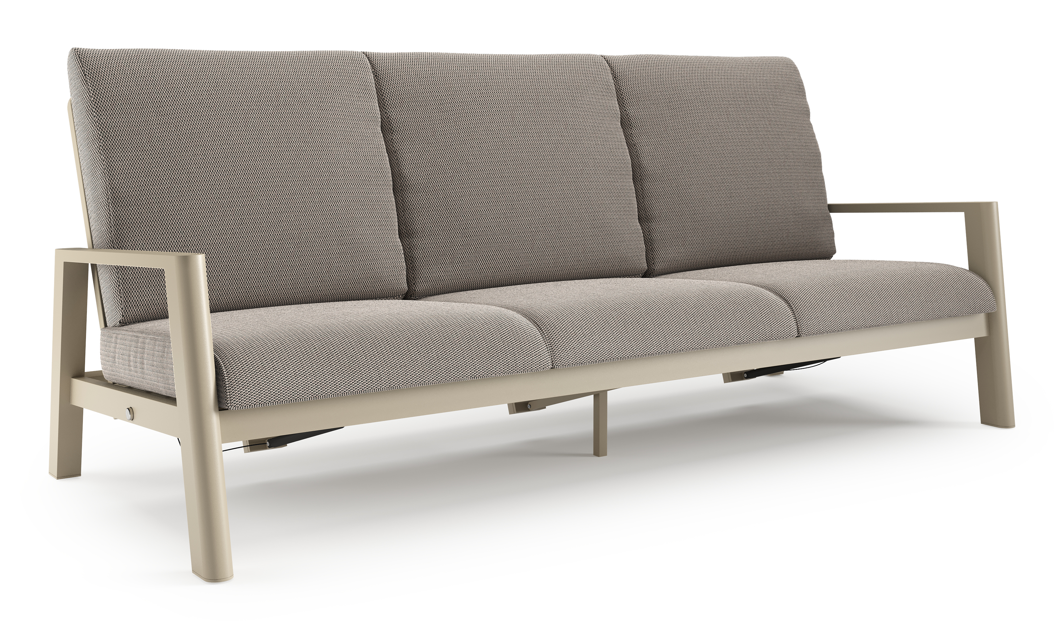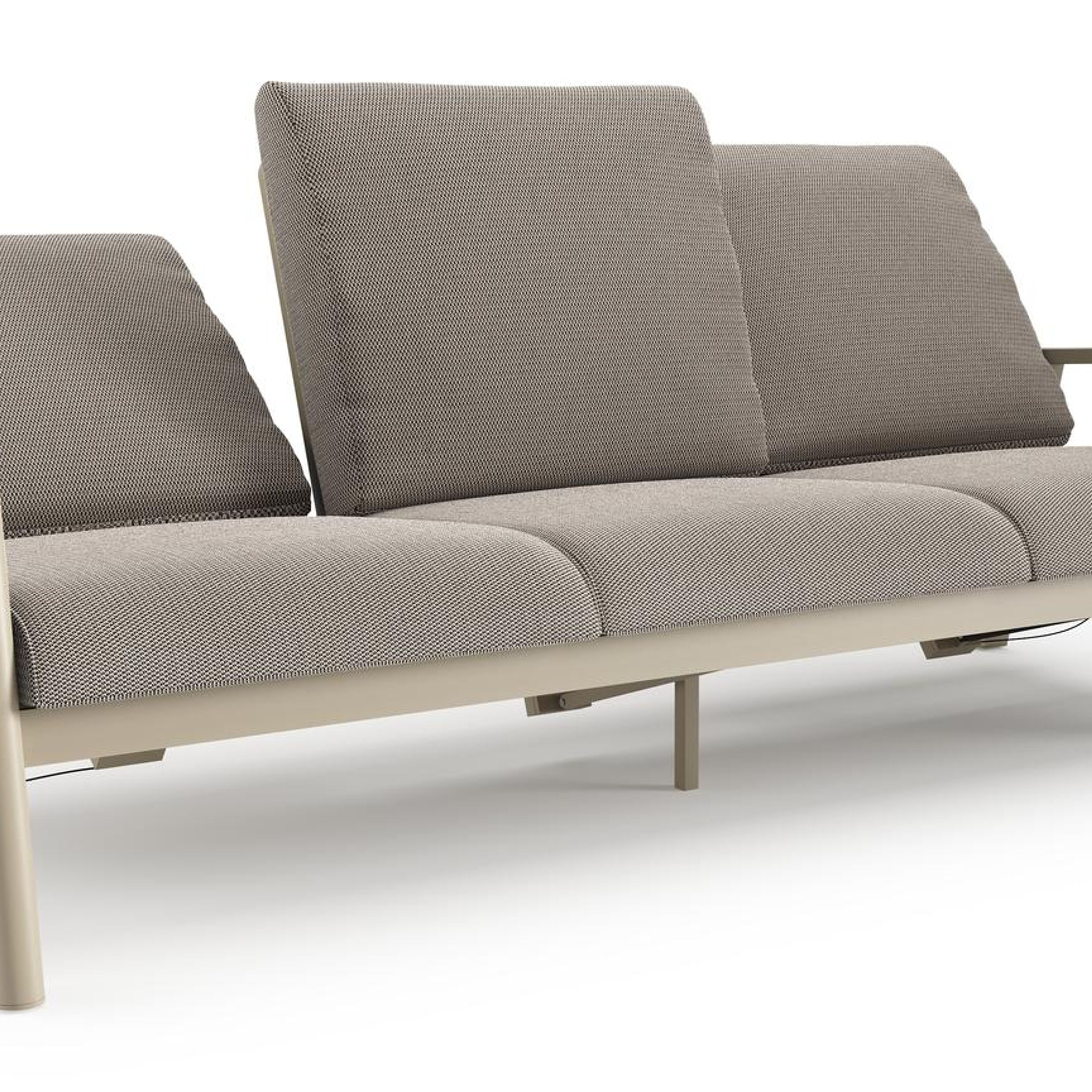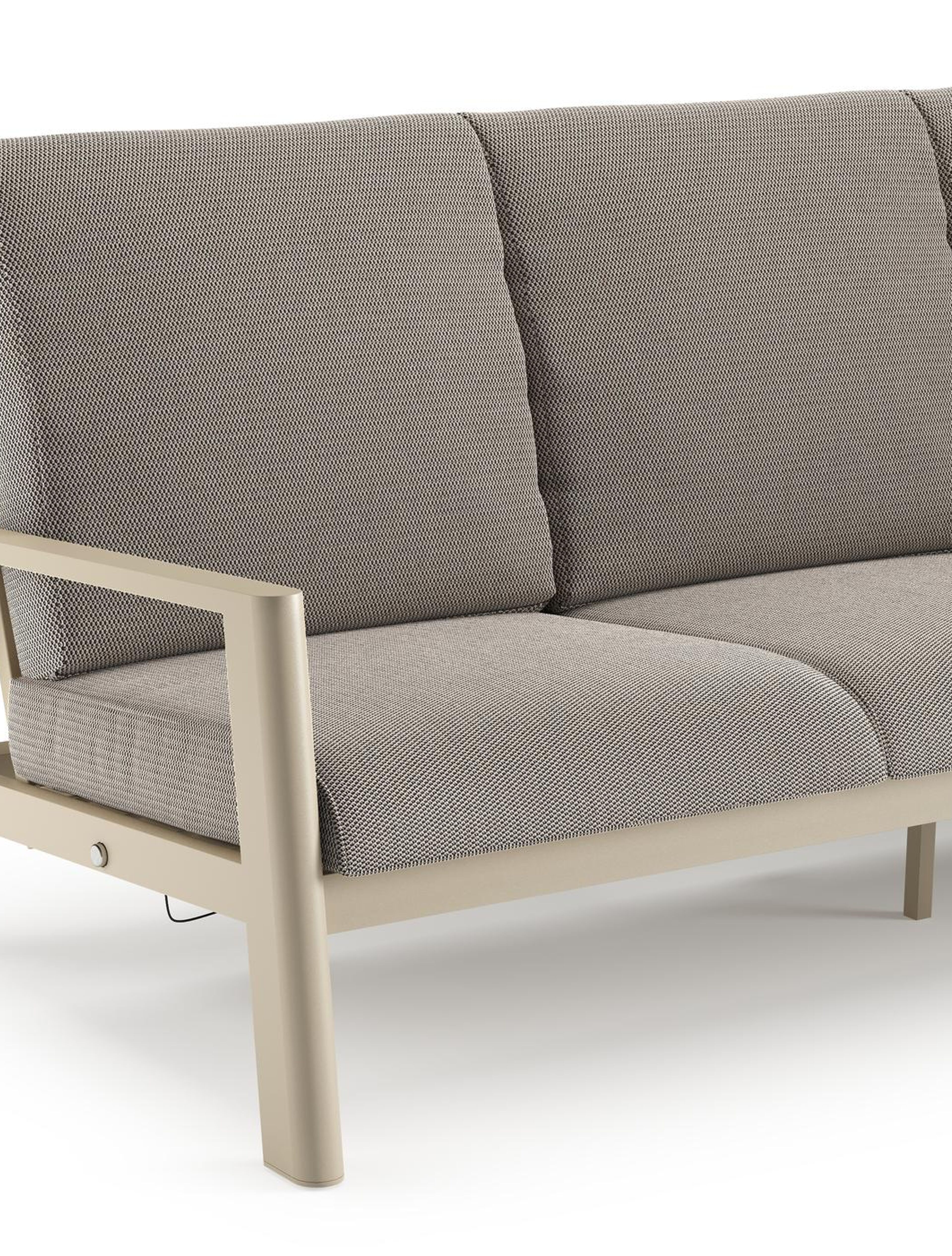 Canapé de jardin Cirello en aluminium beige et coussins en all weather sunbrella® luxe lopi pepper | Exterioo mobilier de jardin