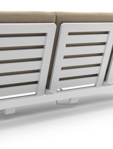 Canapé de jardin Cirello en aluminium blanc et coussins en all weather cosytica althea camel | Exterioo