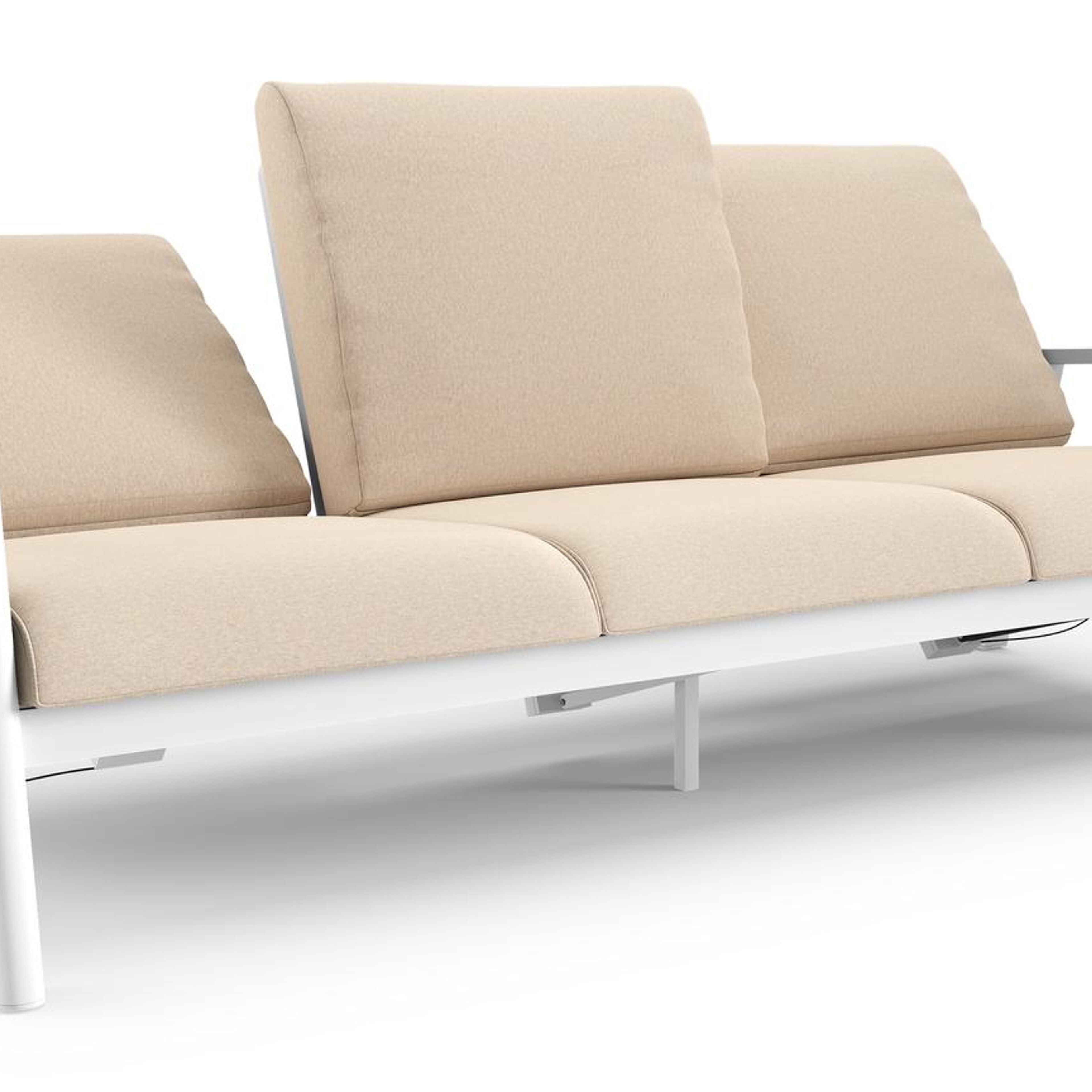Canapé de jardin Cirello en aluminium blanc et coussins en all weather sunbrella® luxe heritage papyrus | Exterioo mobilier de jardin