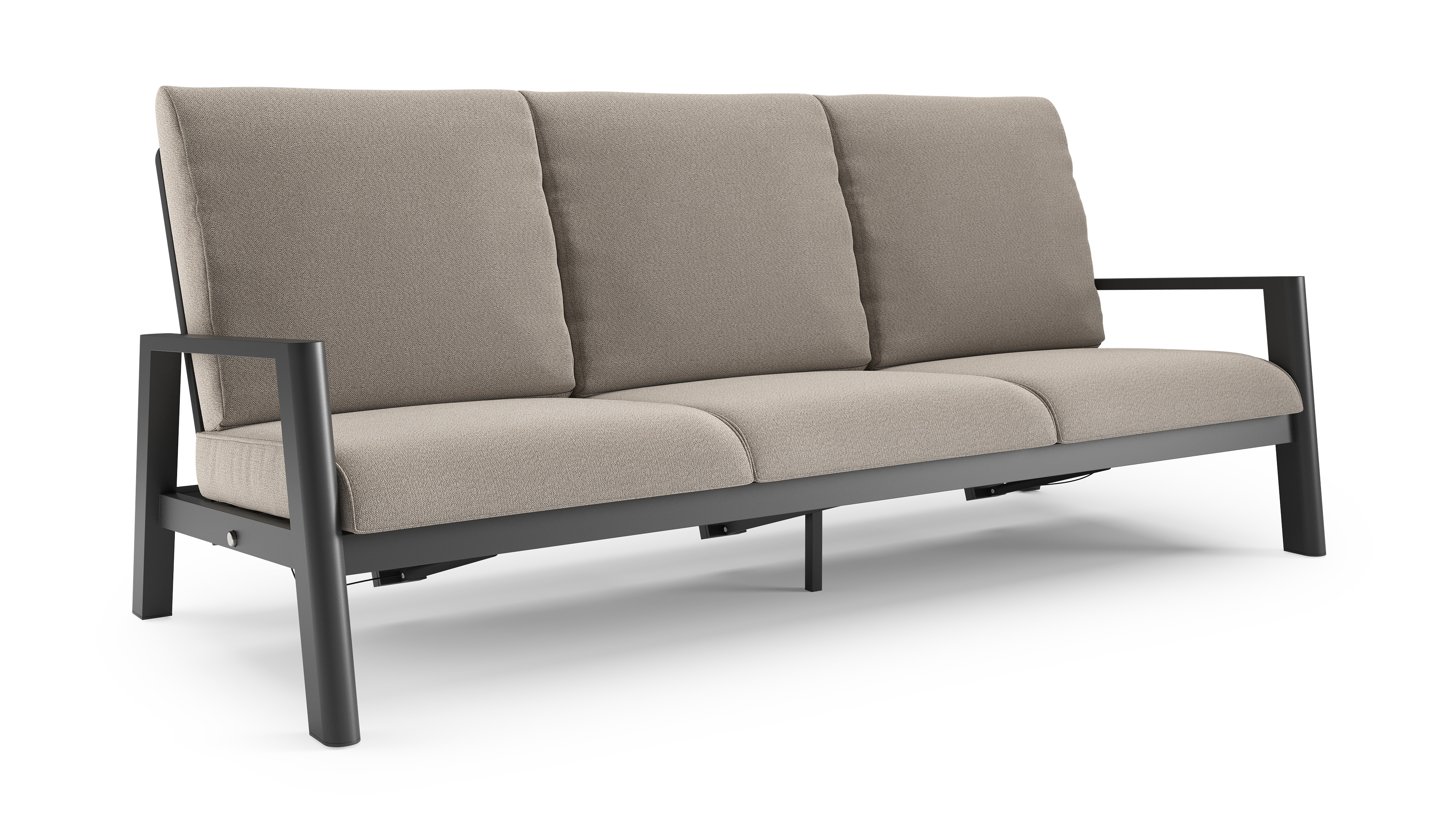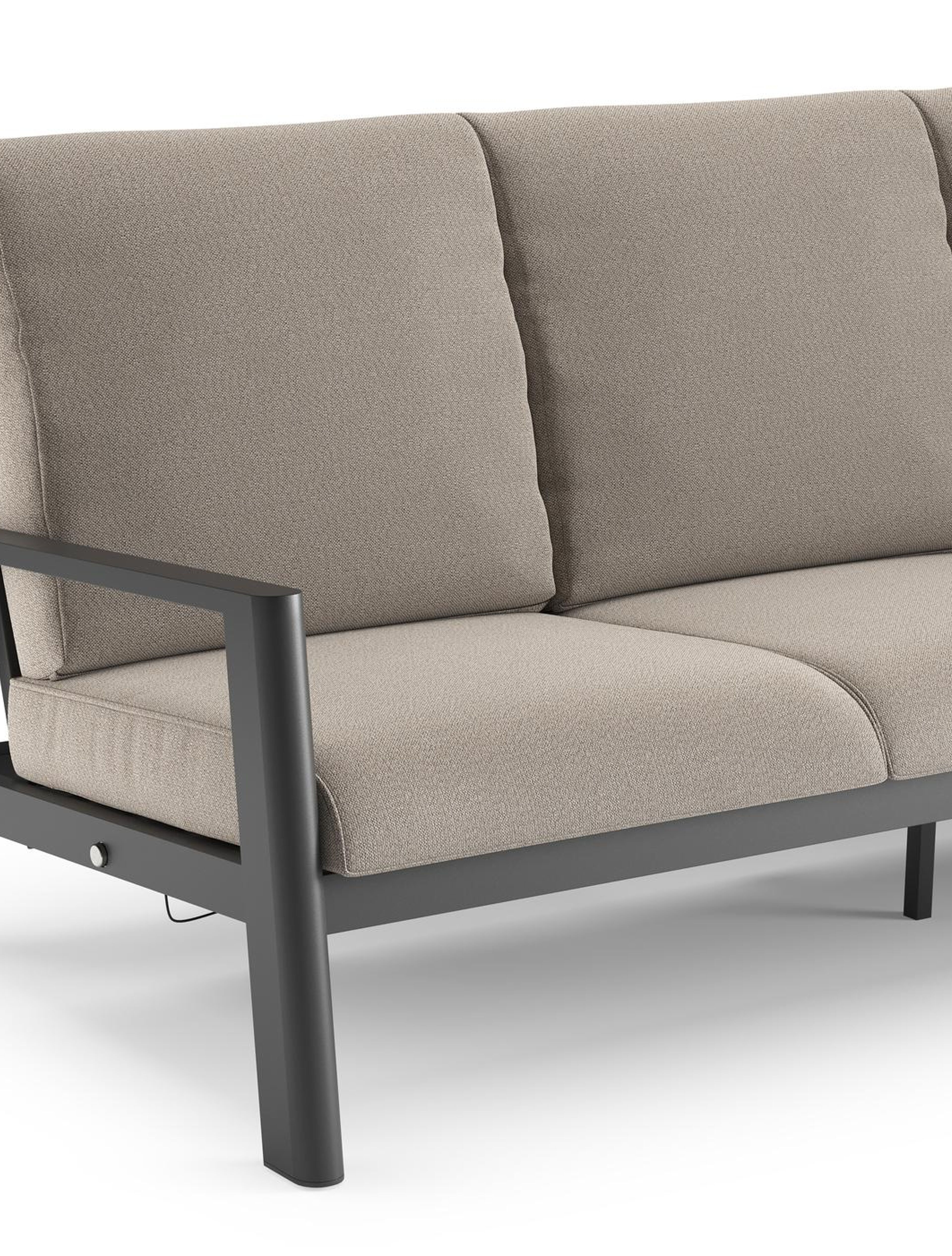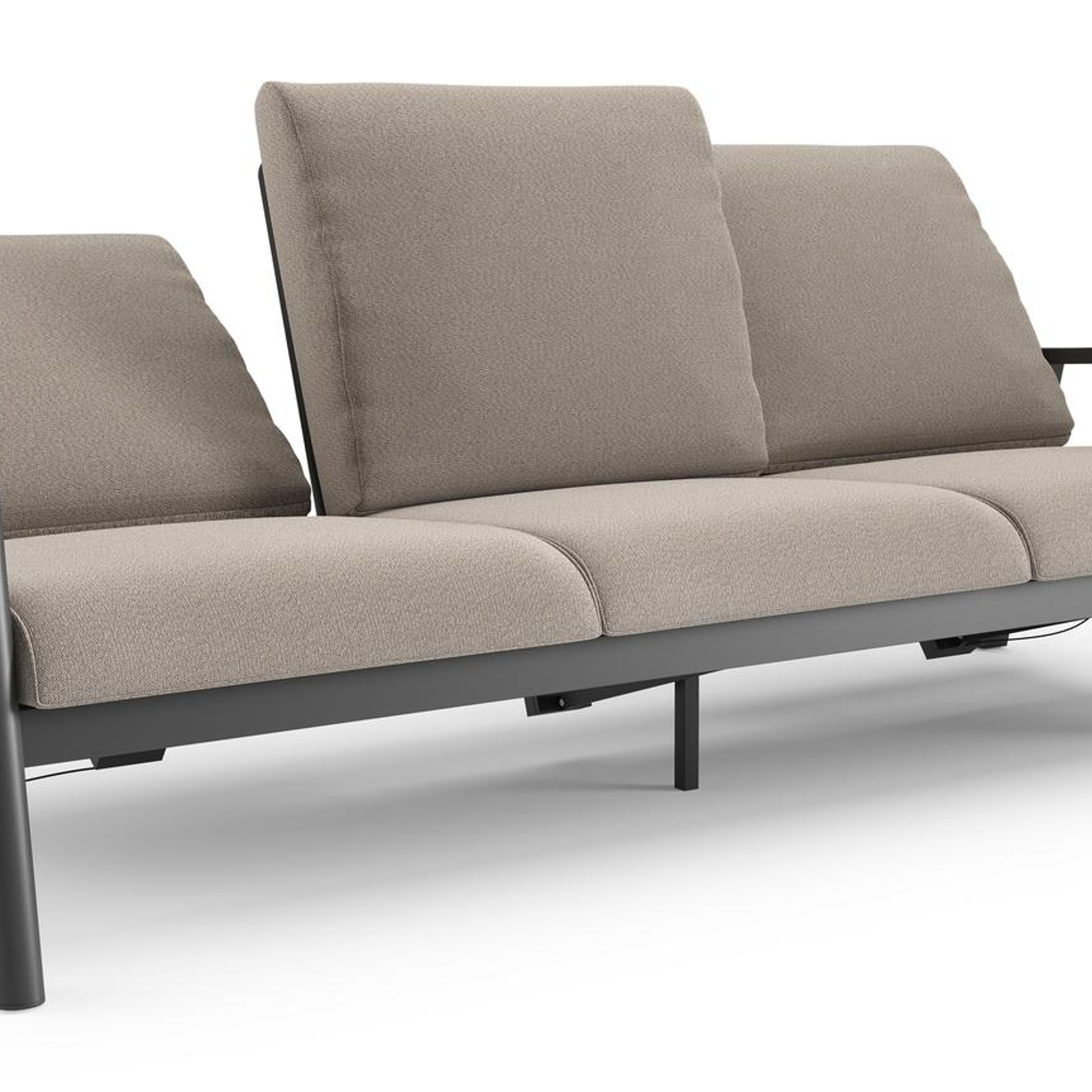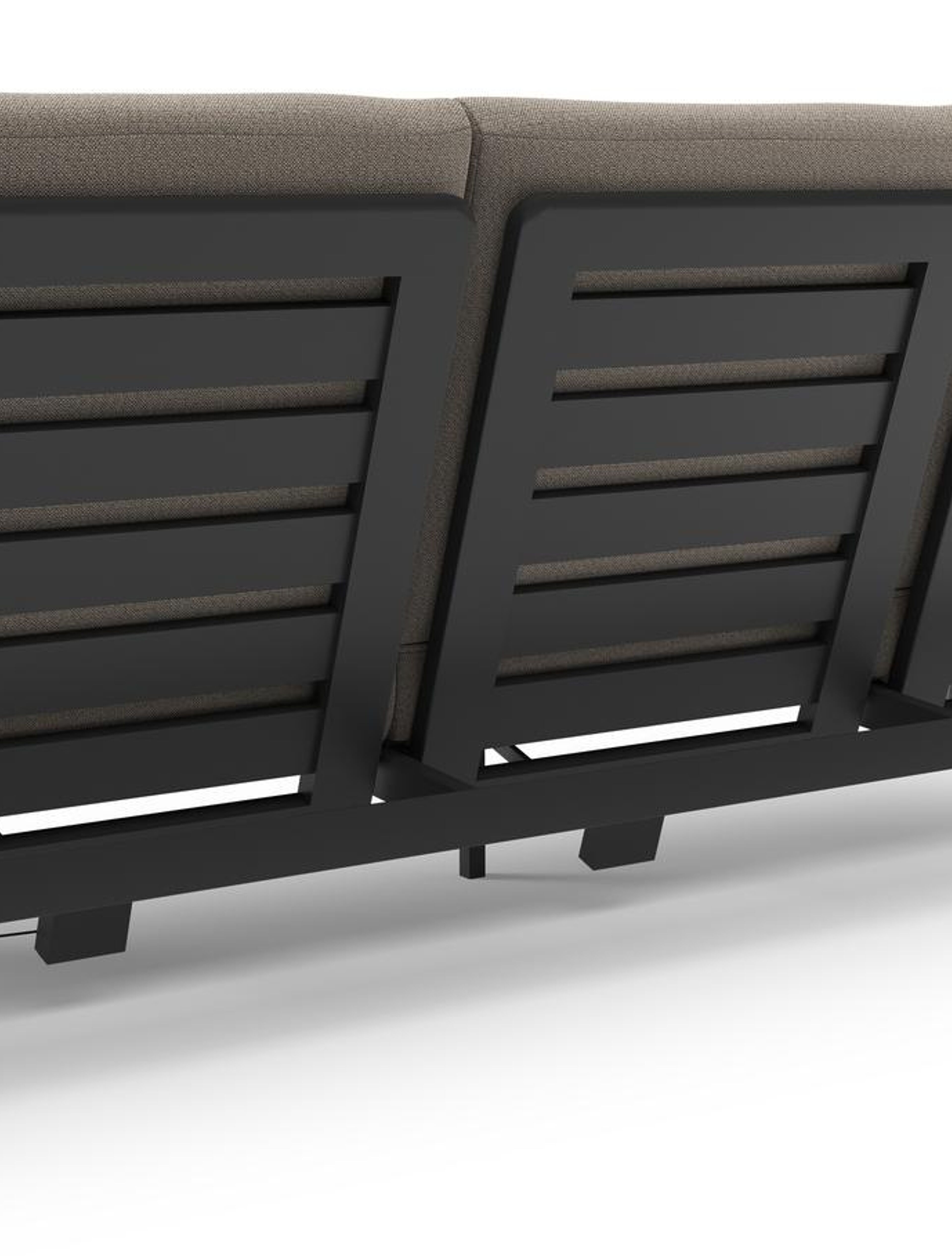 Canapé de jardin Cirello en aluminium noir et coussins en all weather sunbrella® luxe savane coconut | Exterioo mobilier de jardin