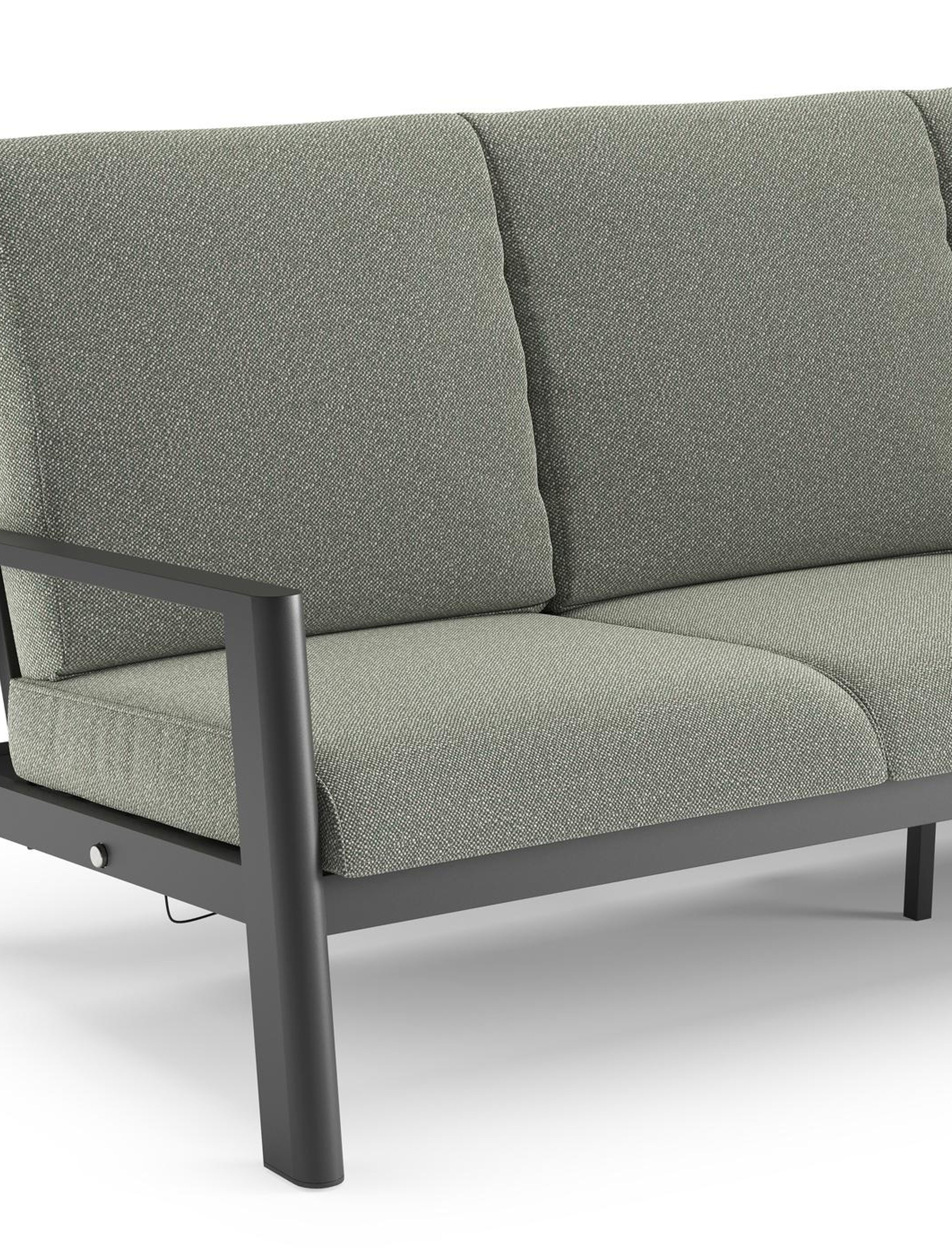 Canapé de jardin Cirello en aluminium noir et coussins en all weather sunbrella® luxe savane leaf | Exterioo mobilier de jardin