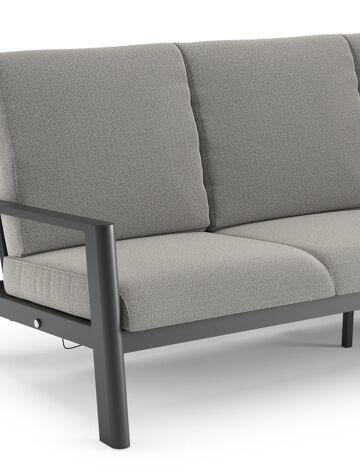 Canapé de jardin Cirello en aluminium noir et coussins en all weather sunbrella® luxe savane tunder | Exterioo