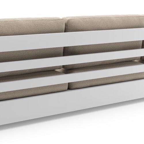 Canapé de jardin Como en aluminium blanc et coussins en all weather sunbrella® luxe lopi sand | Exterioo