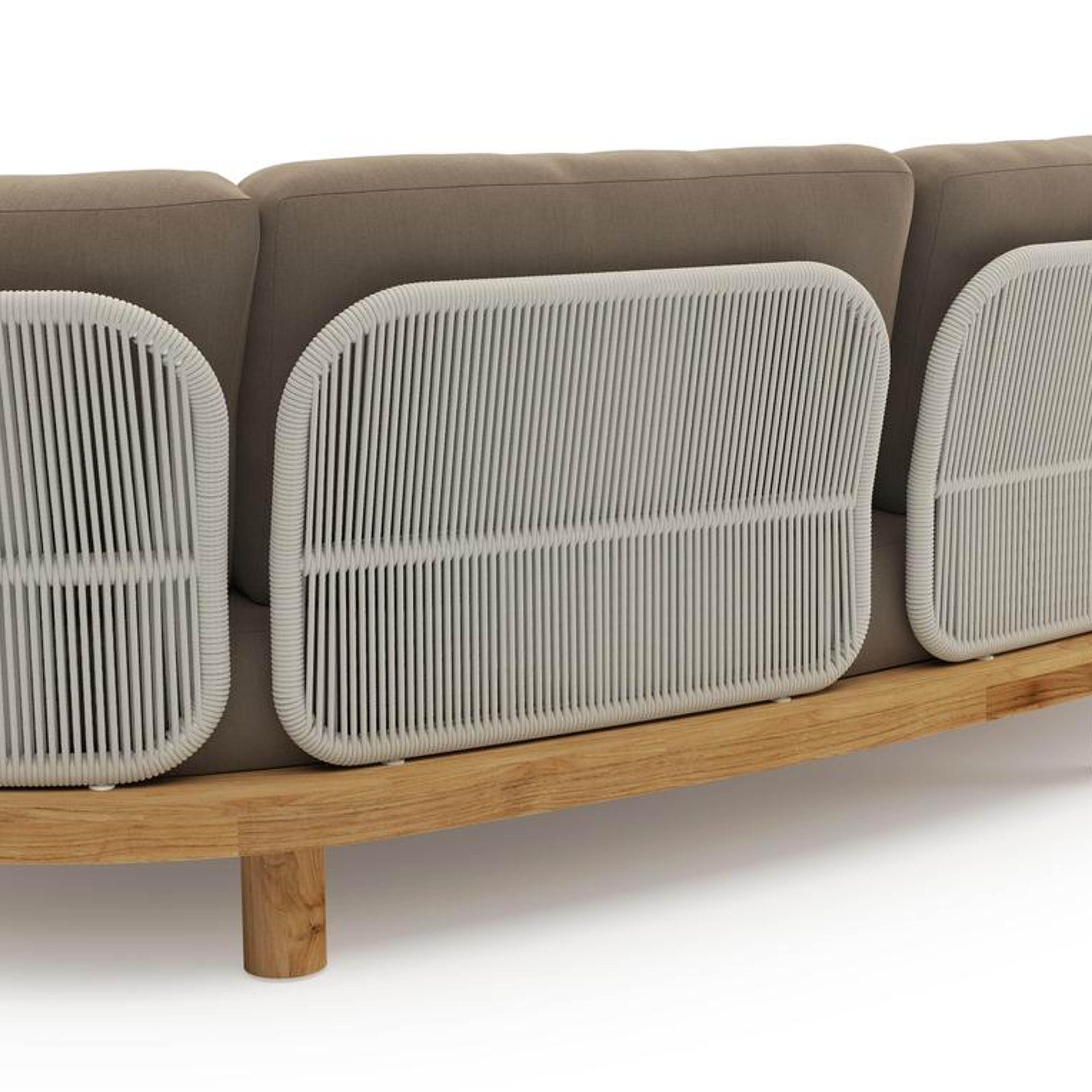 Canapé de jardin Donato en teck et coussins en all weather sunbrella® luxe natte heather grey | Exterioo mobilier de jardin