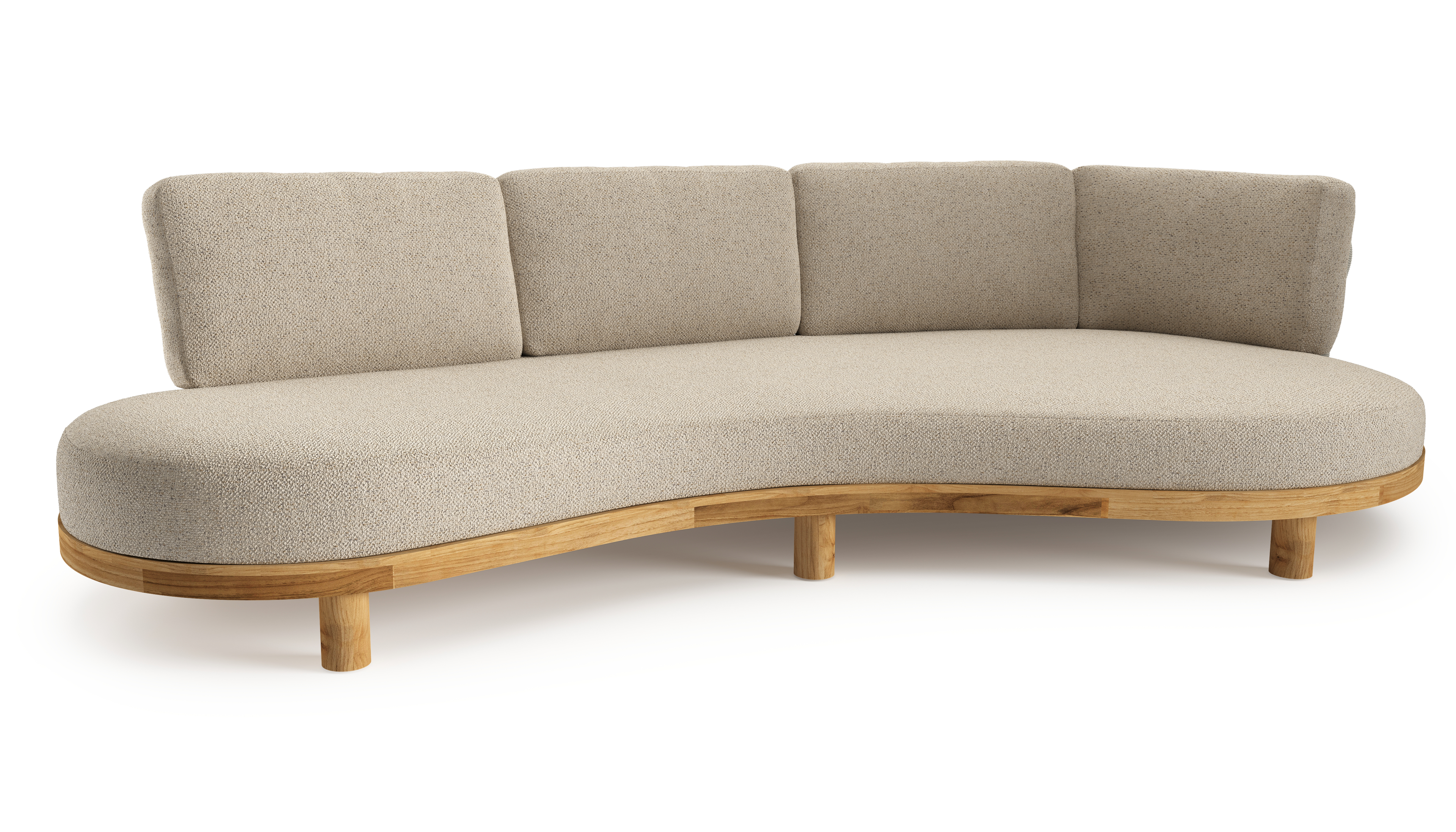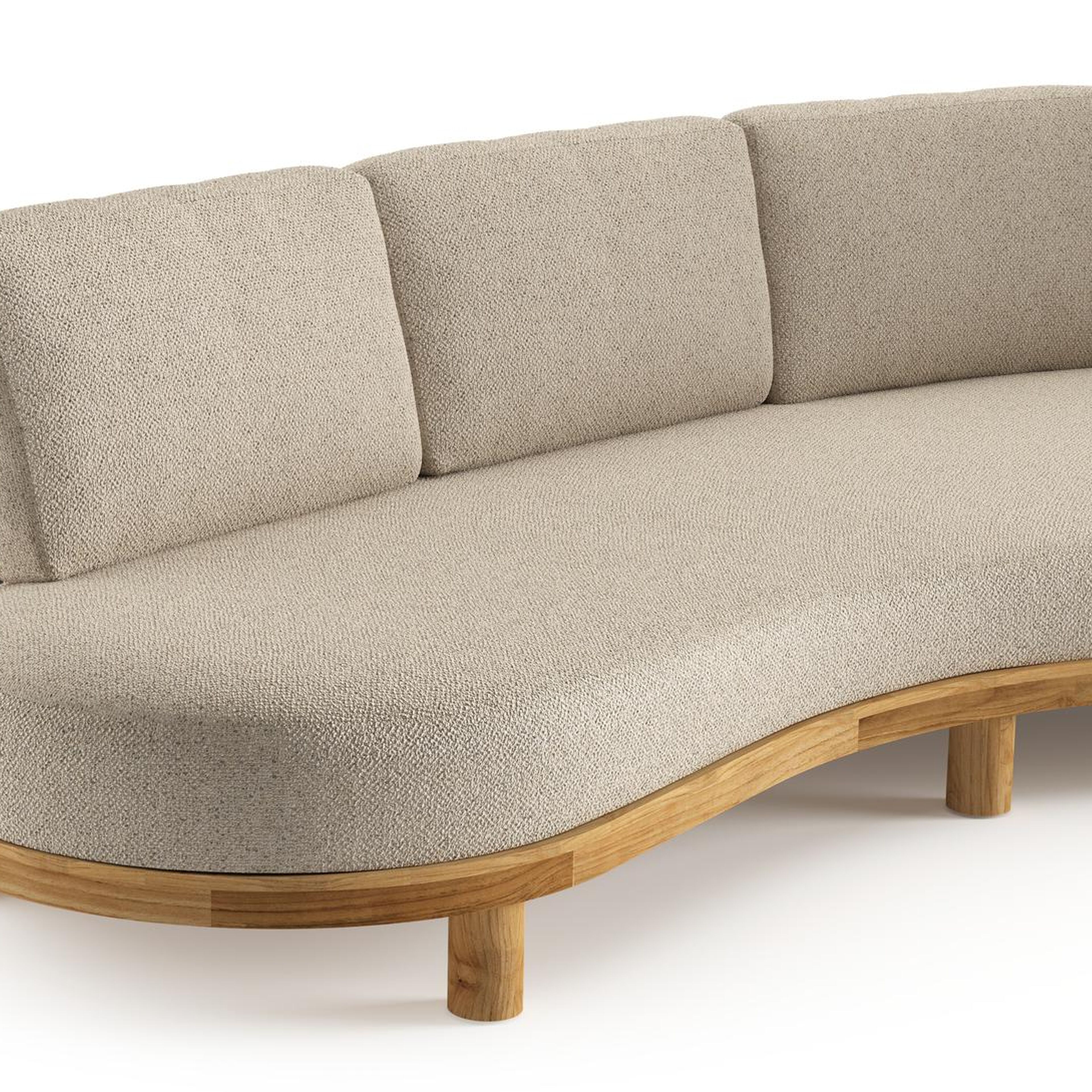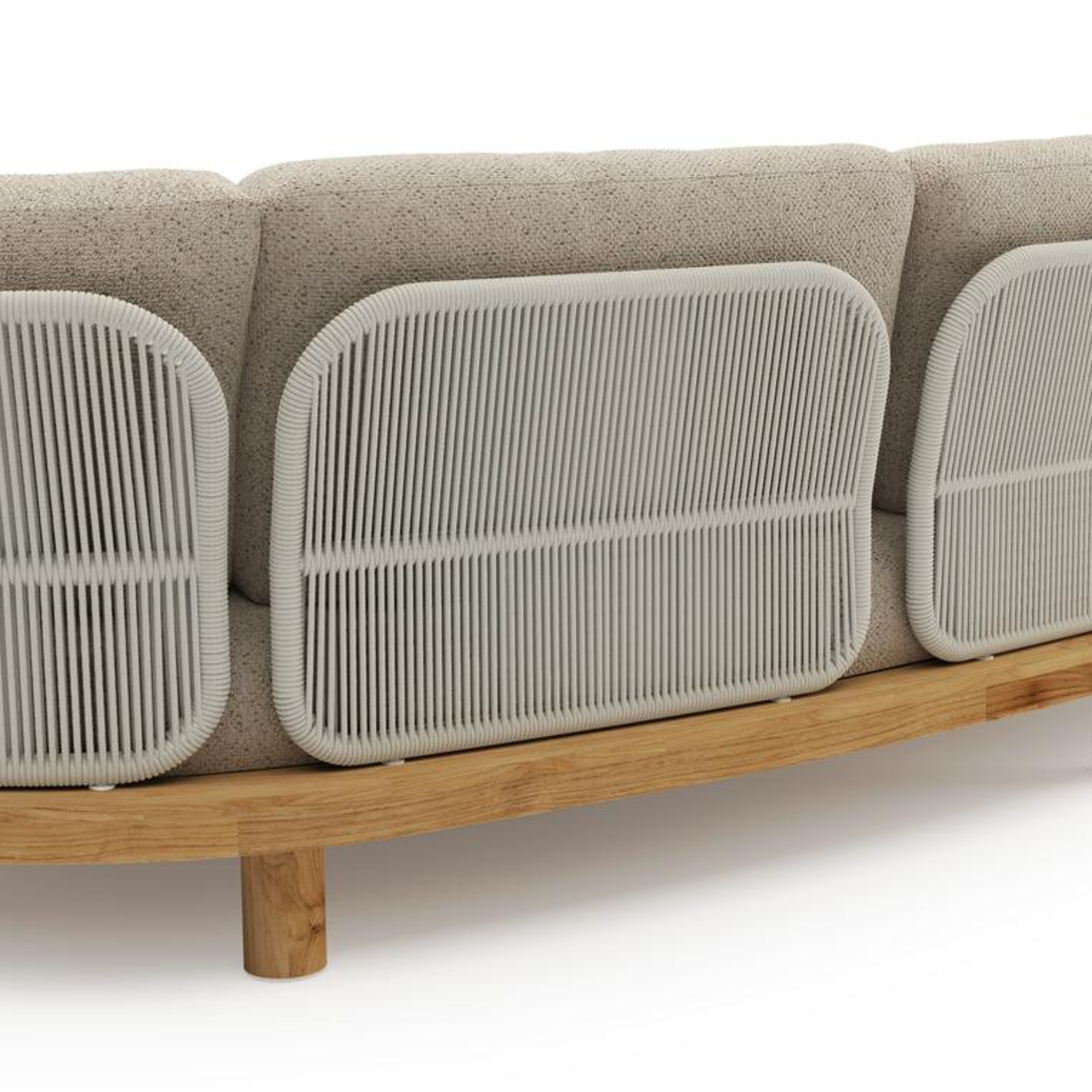 Canapé de jardin Donato en teck et coussins en all weather cosytica bora desert | Exterioo mobilier de jardin