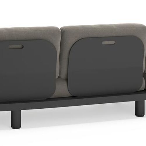 Canapé de jardin Donato en aluminium noir et coussins en all weather sunbrella® luxe Lopi Silver | Exterioo