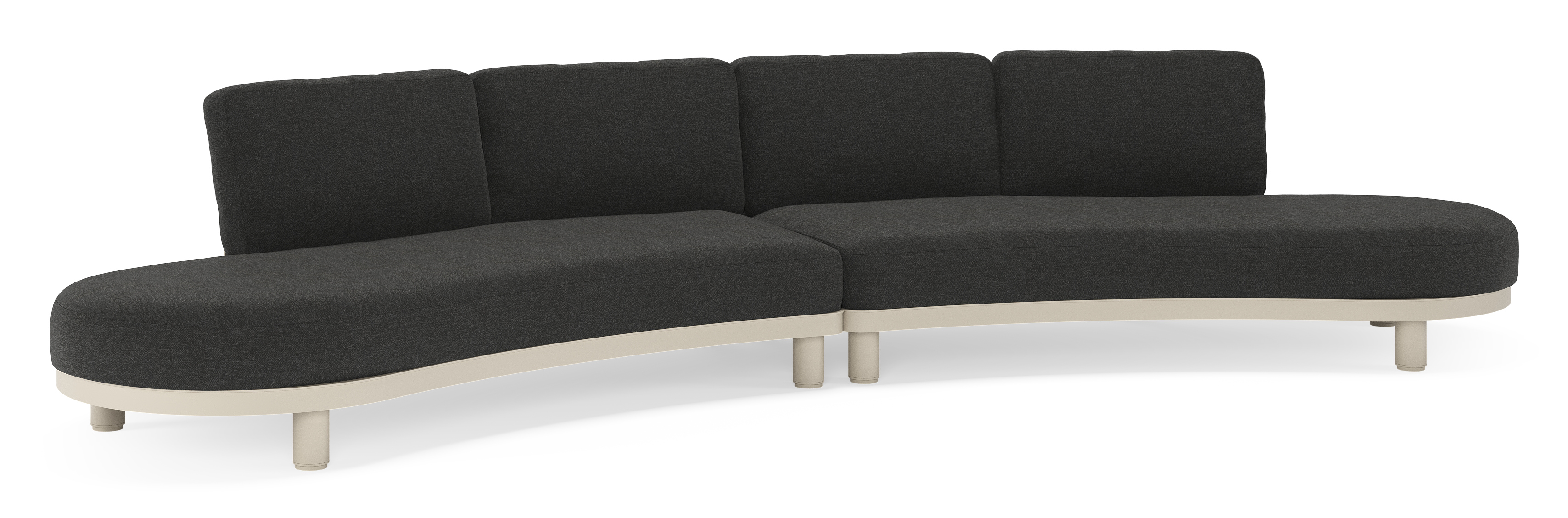 Canapé de jardin Donato en aluminium beige et coussins en all weather sunbrella® luxe Chartres Sooty | Exterioo mobilier de jardin