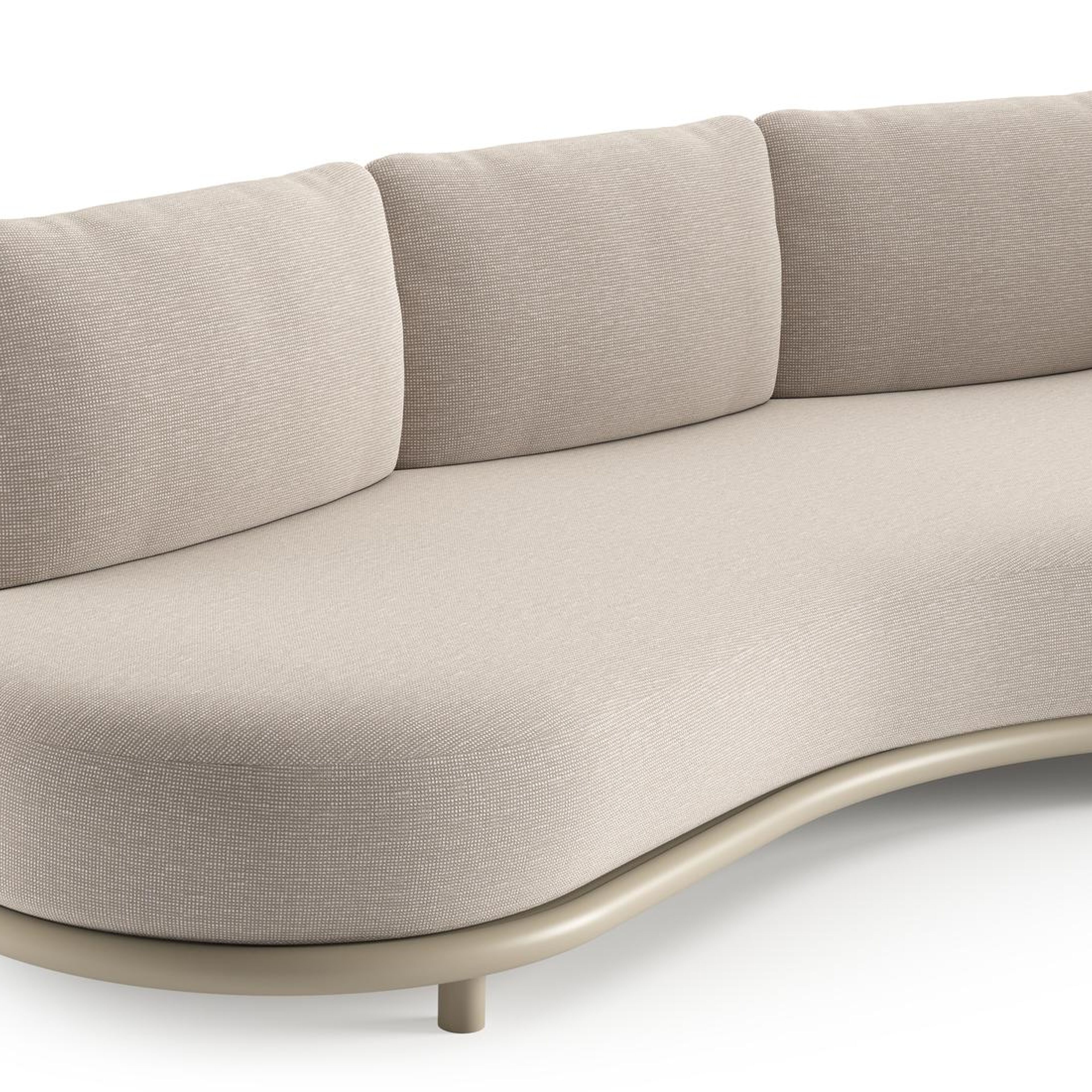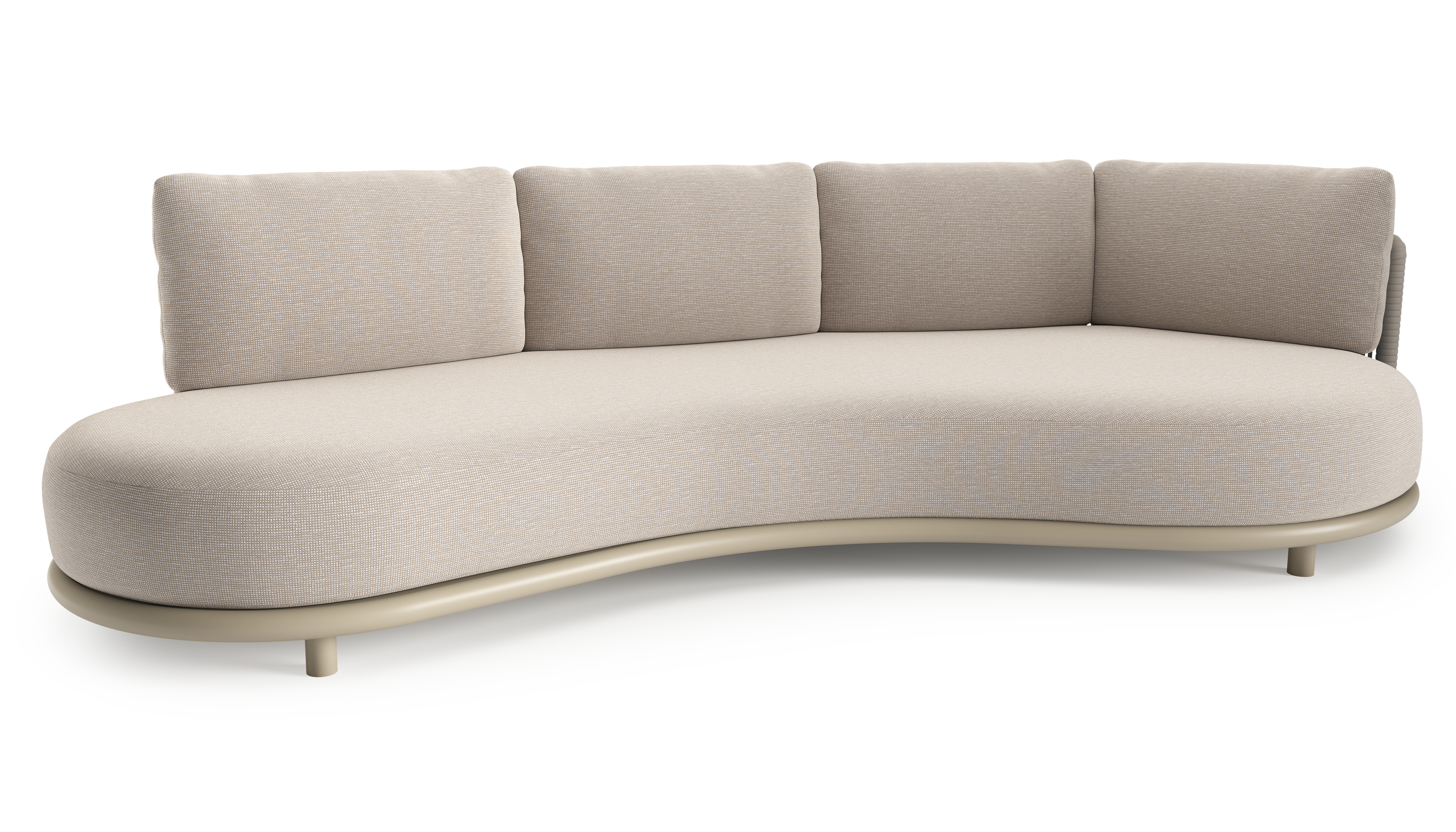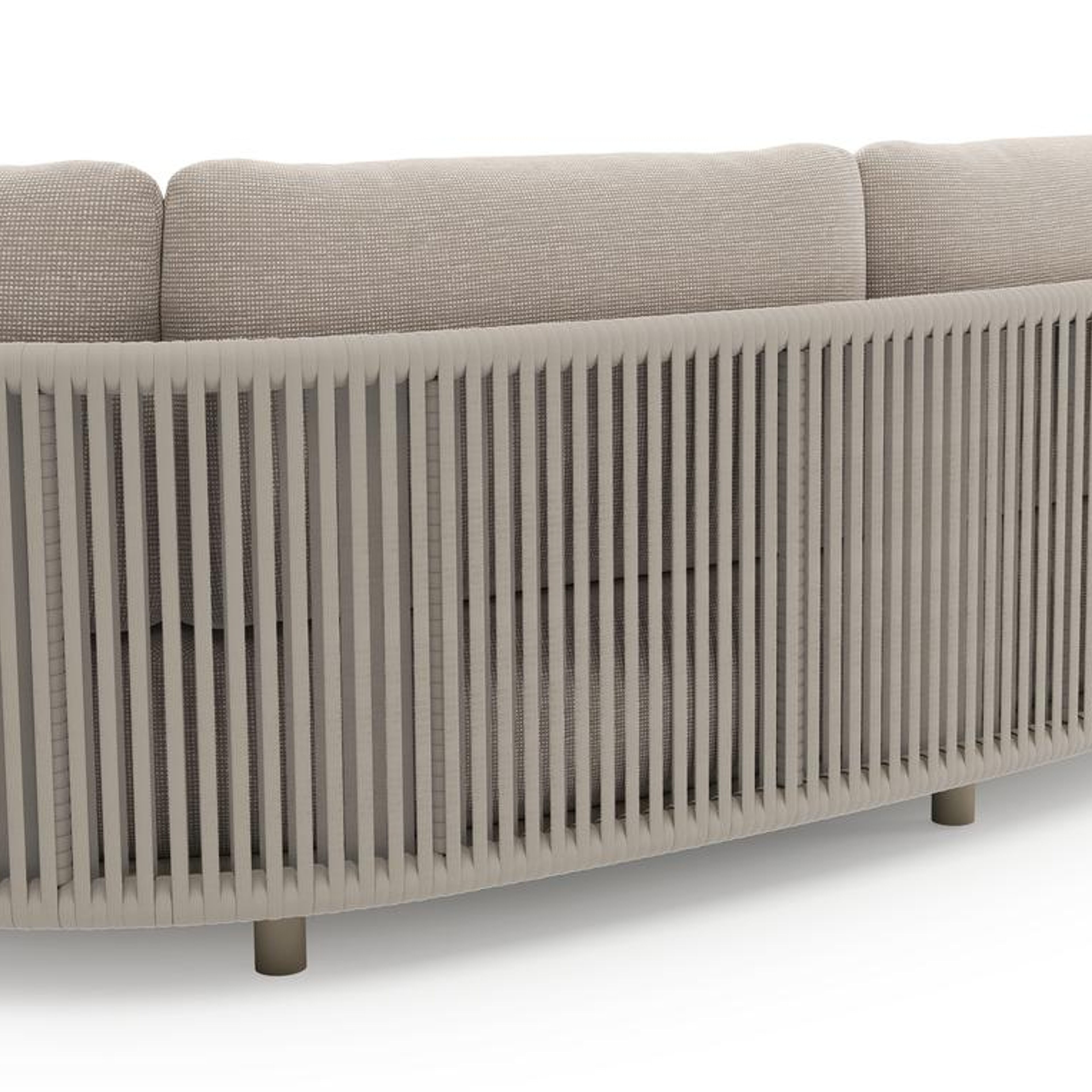 Canapé de jardin Lomano en aluminium beige et corde luxe plate tissée verticalement beige et coussins en all weather sunbrella® luxe slow farafra | Exterioo mobilier de jardin