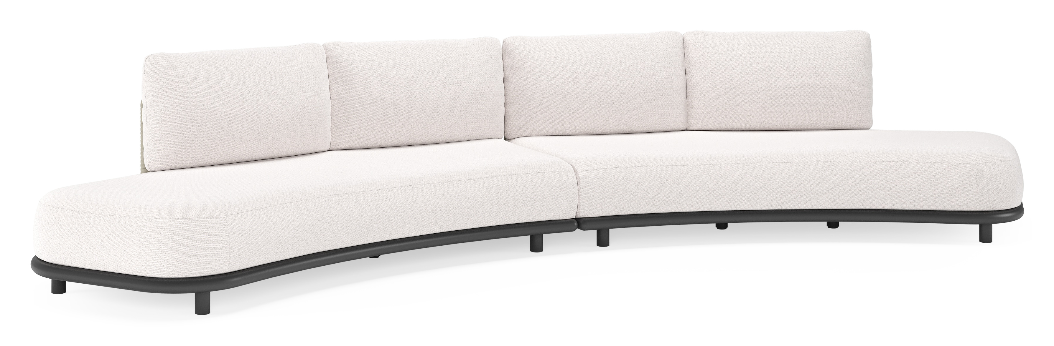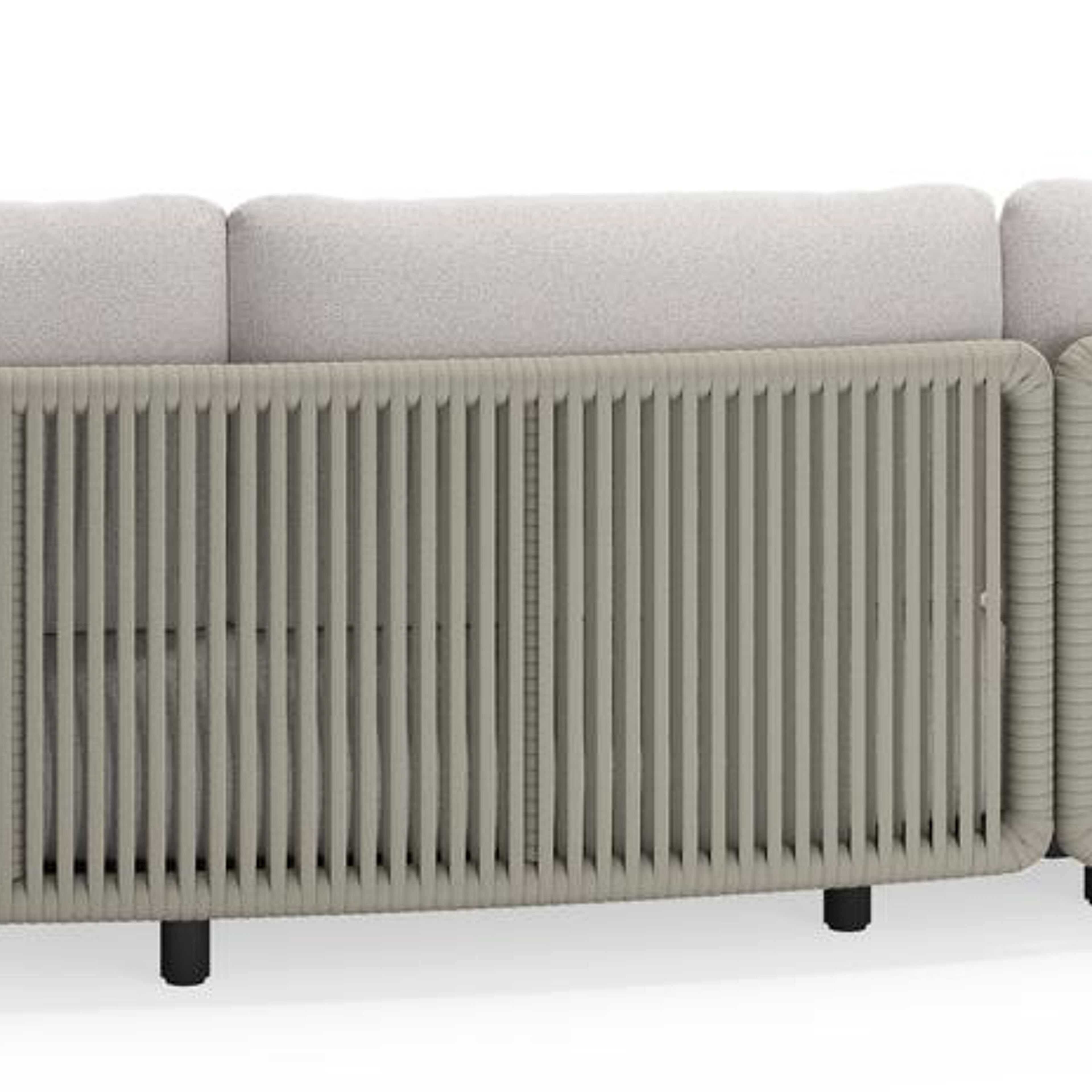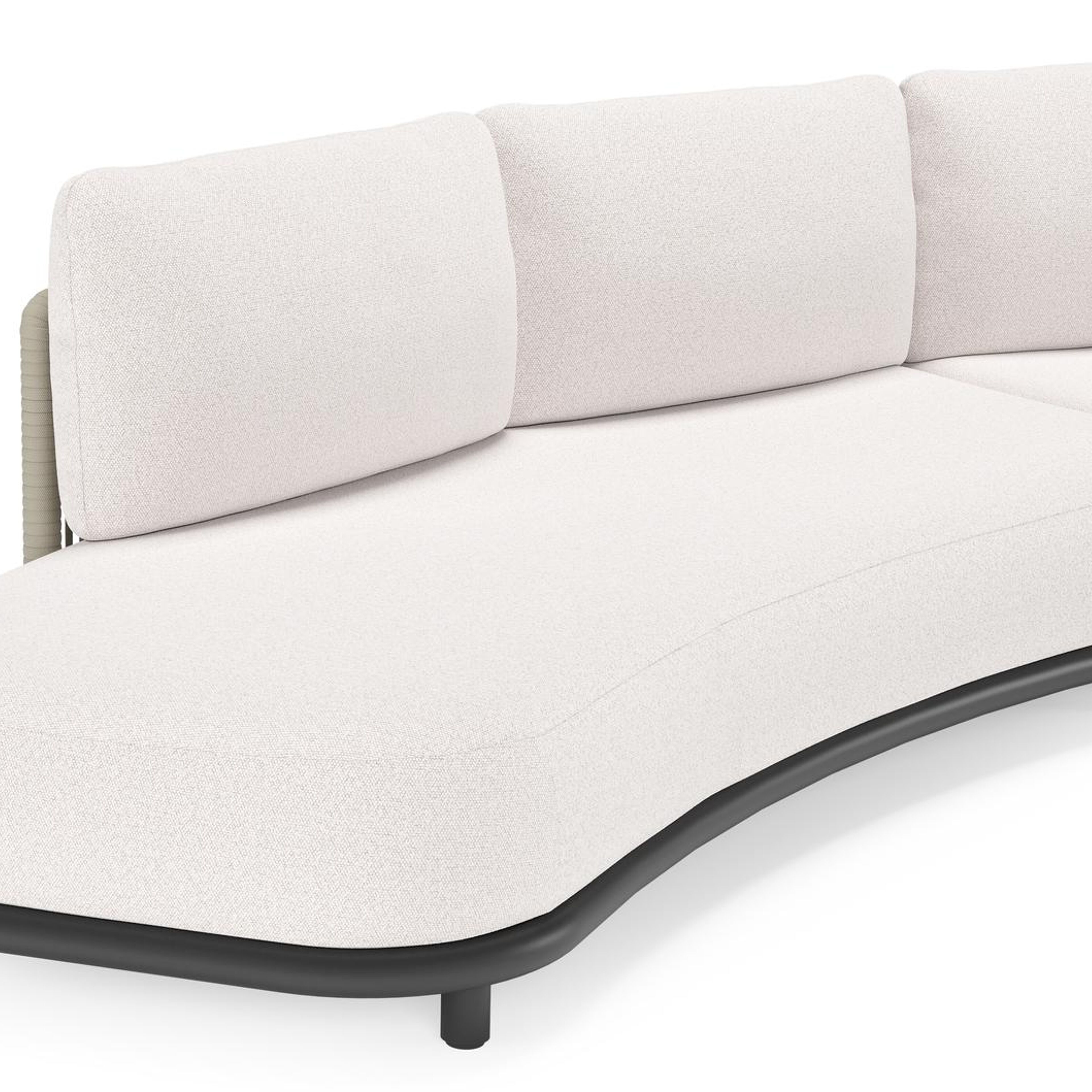 Canapé de jardin Lomano en aluminium noir et corde luxe plate tissée verticalement beige et coussins en all weather solica Ego Eggshell | Exterioo mobilier de jardin
