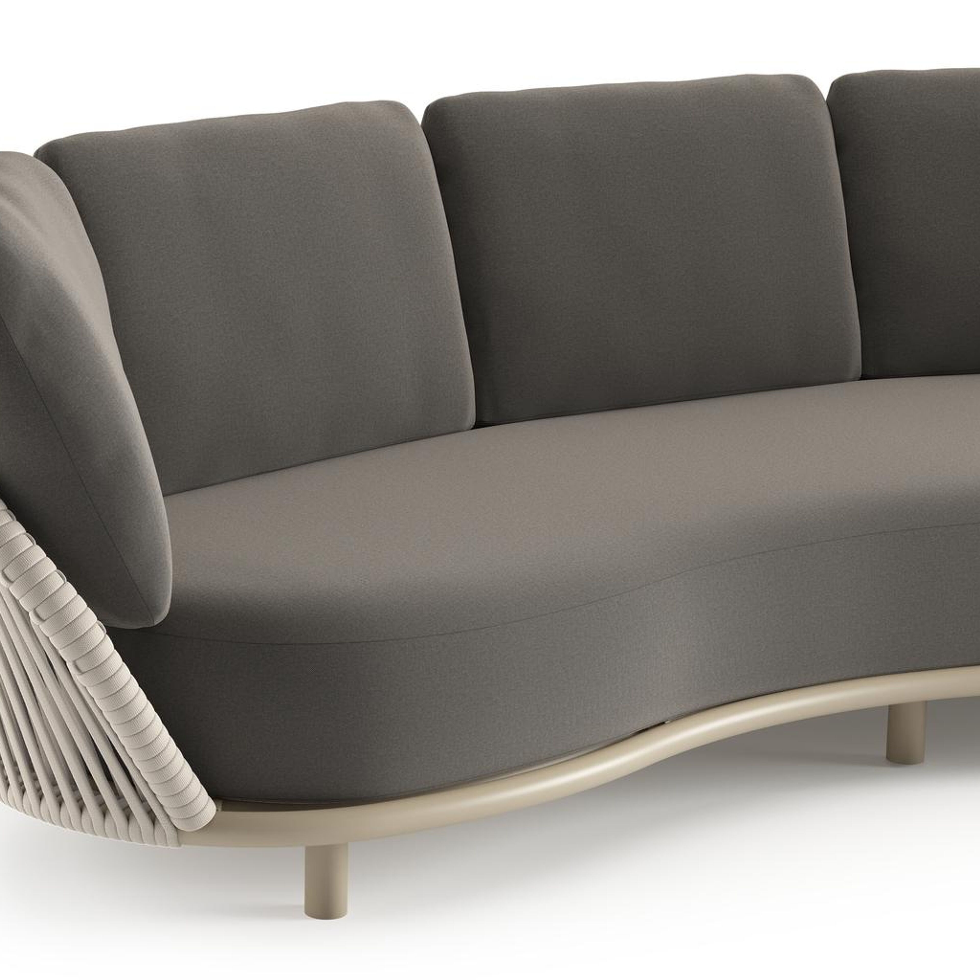 Canapé de jardin Lupino en aluminium beige et corde large plate de luxe tissée verticalement beige et coussins en all weather sunbrella® luxe natte dark taupe | Exterioo mobilier de jardin