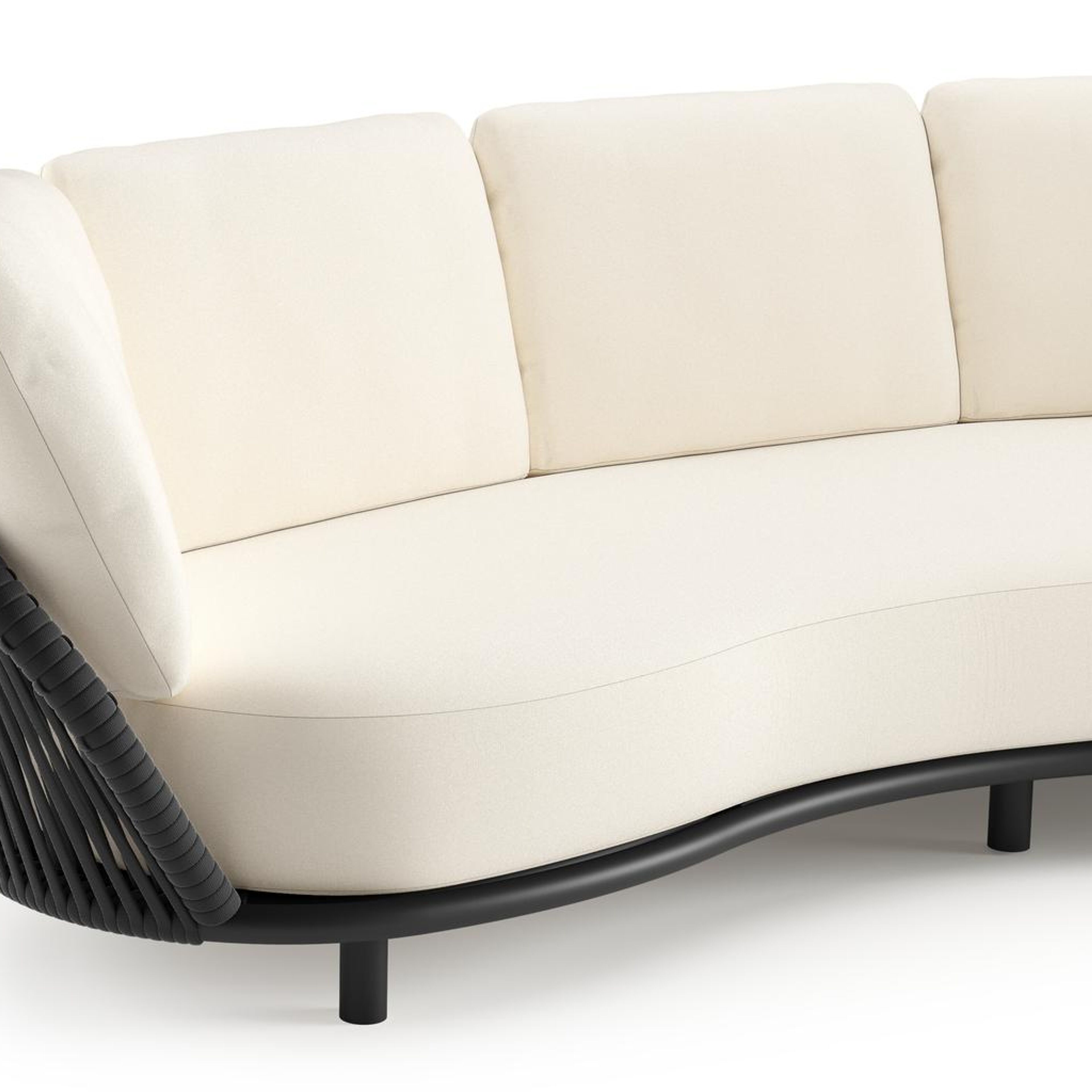 Canapé de jardin Lupino en aluminium noir et corde large plate de luxe tissée verticalement noir et coussins en all weather sunbrella® luxe natte white | Exterioo mobilier de jardin