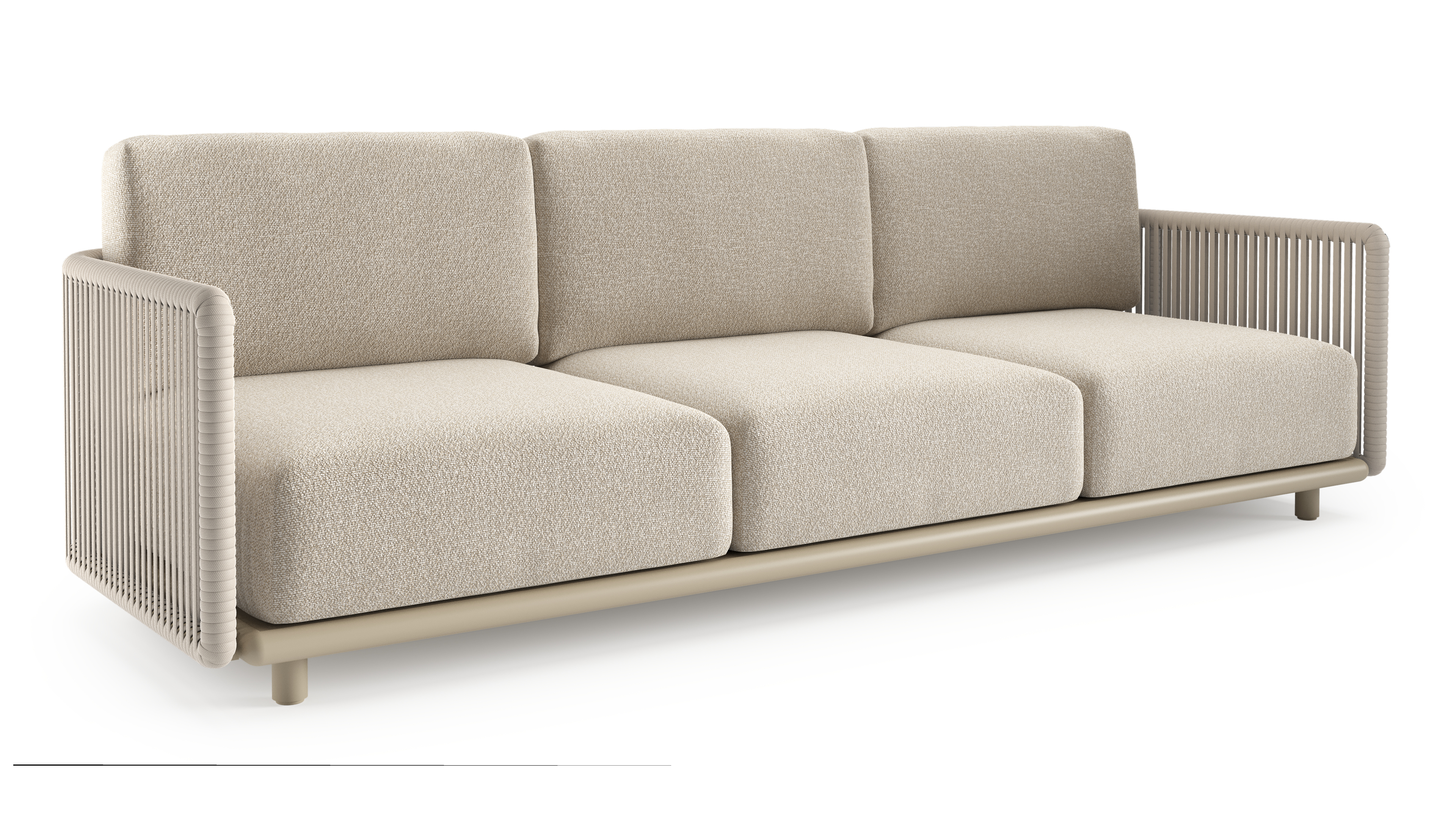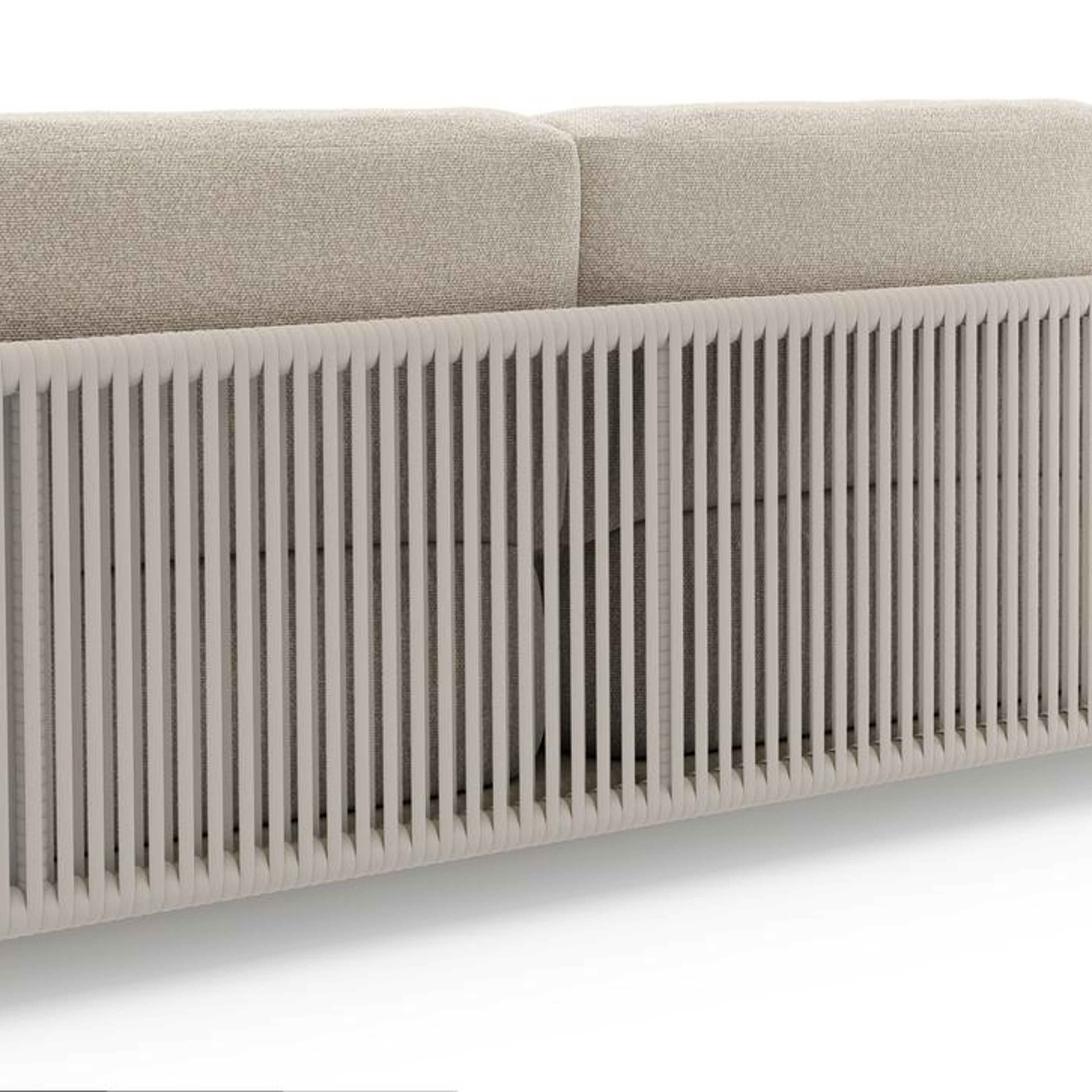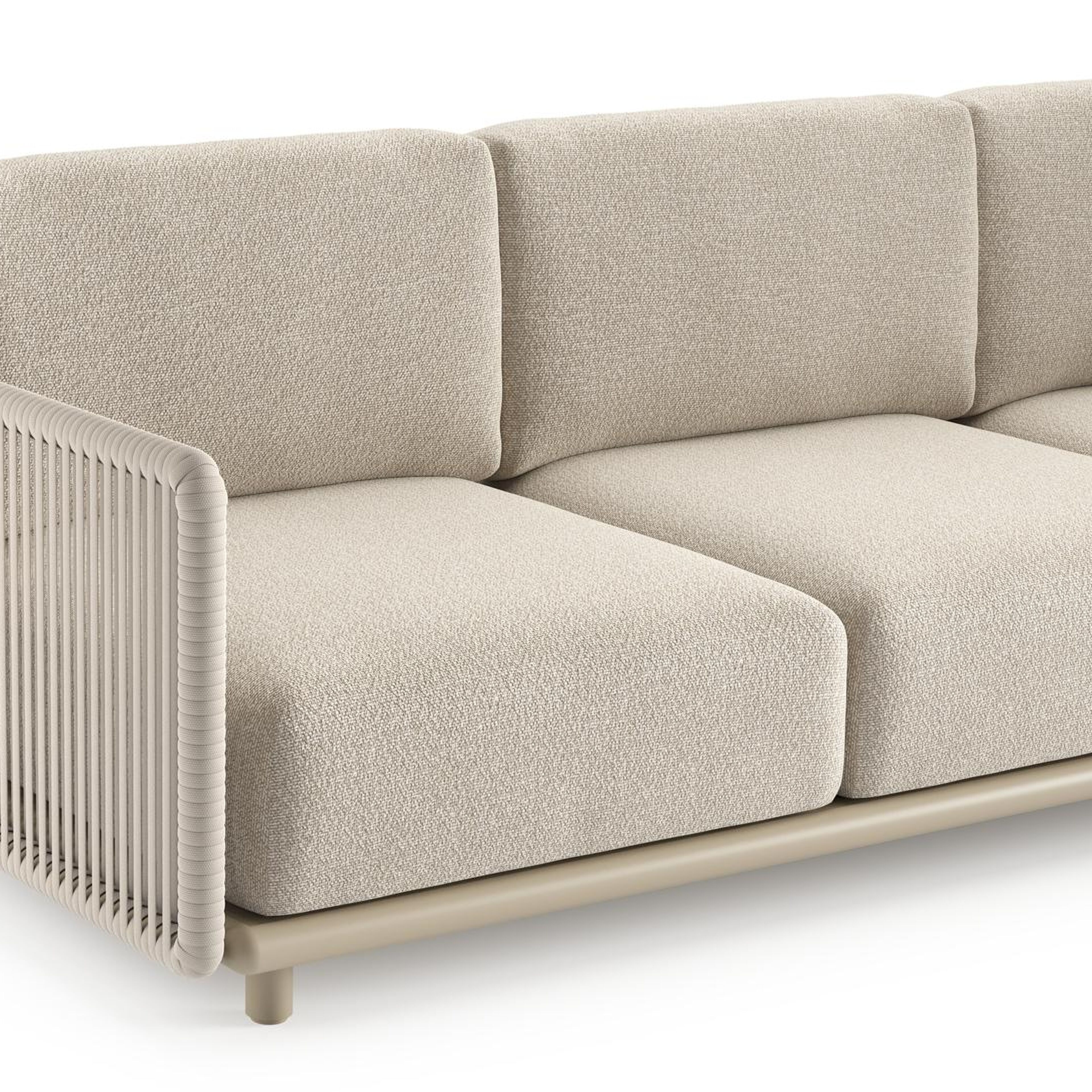 Canapé de jardin Organo en aluminium beige et corde luxe plate tissée verticalement beige et coussin en all weather Cosytica marbella ecru | Exterioo mobilier de jardin