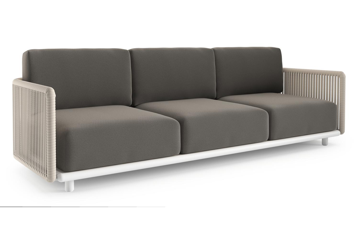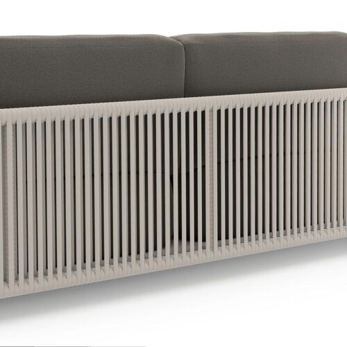 Canapé de jardin Organo en aluminium blanc et corde luxe plate tissée verticalement beige et coussin en all weather Sunbrella® luxe natte dark taupe | Exterioo