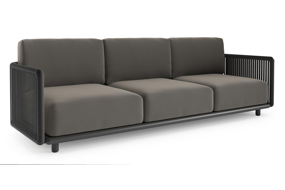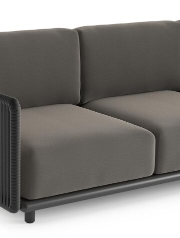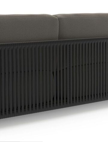 Canapé de jardin Organo en aluminium noir et corde luxe plate tissée verticalement noir et coussin en all weather Sunbrella® luxe natte dark taupe | Exterioo