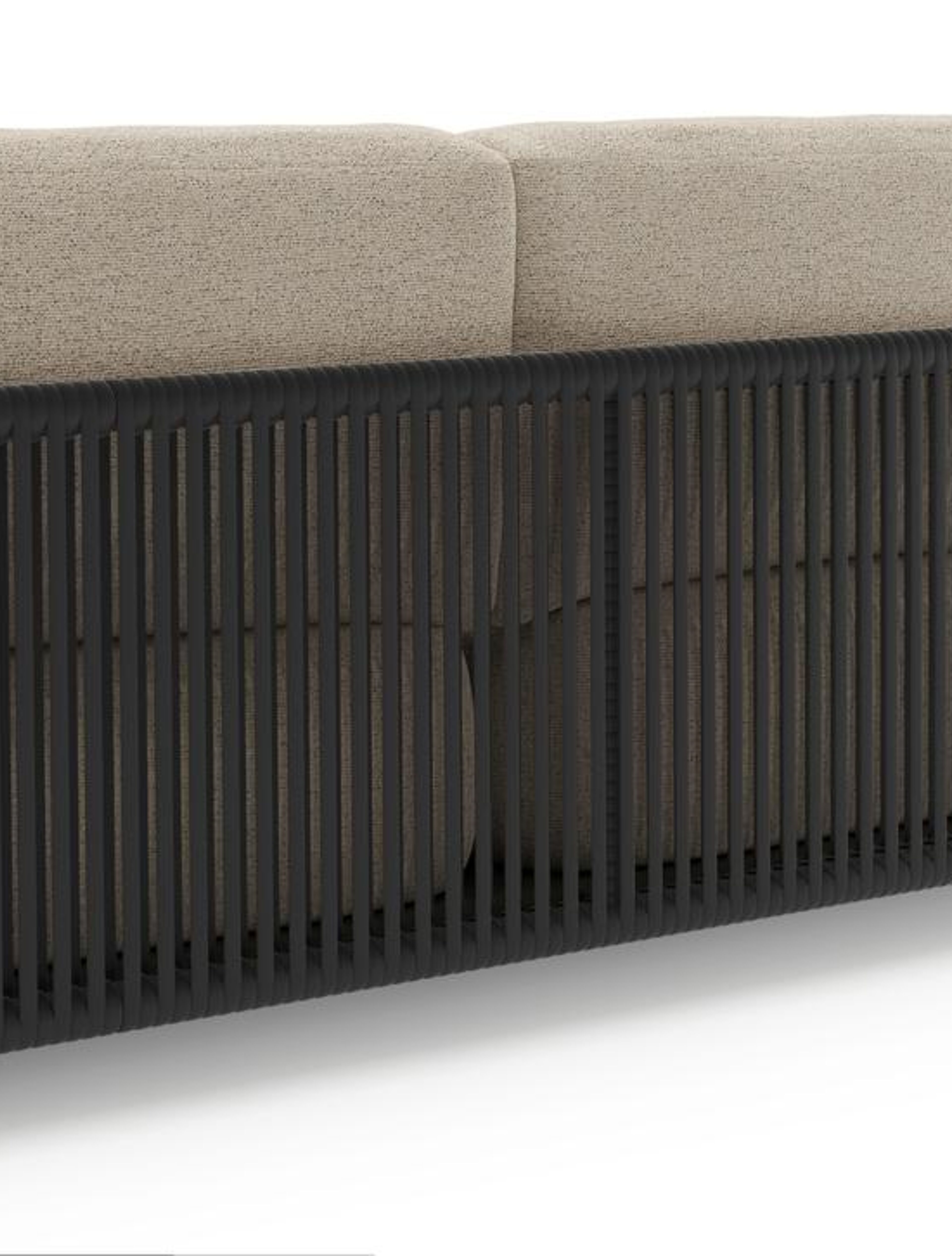 Canapé de jardin Organo 3-pl en aluminium noir et corde luxe plate tissée verticalement noir et coussins en All Weather Cosytica marbella beige | Exterioo mobilier de jardin