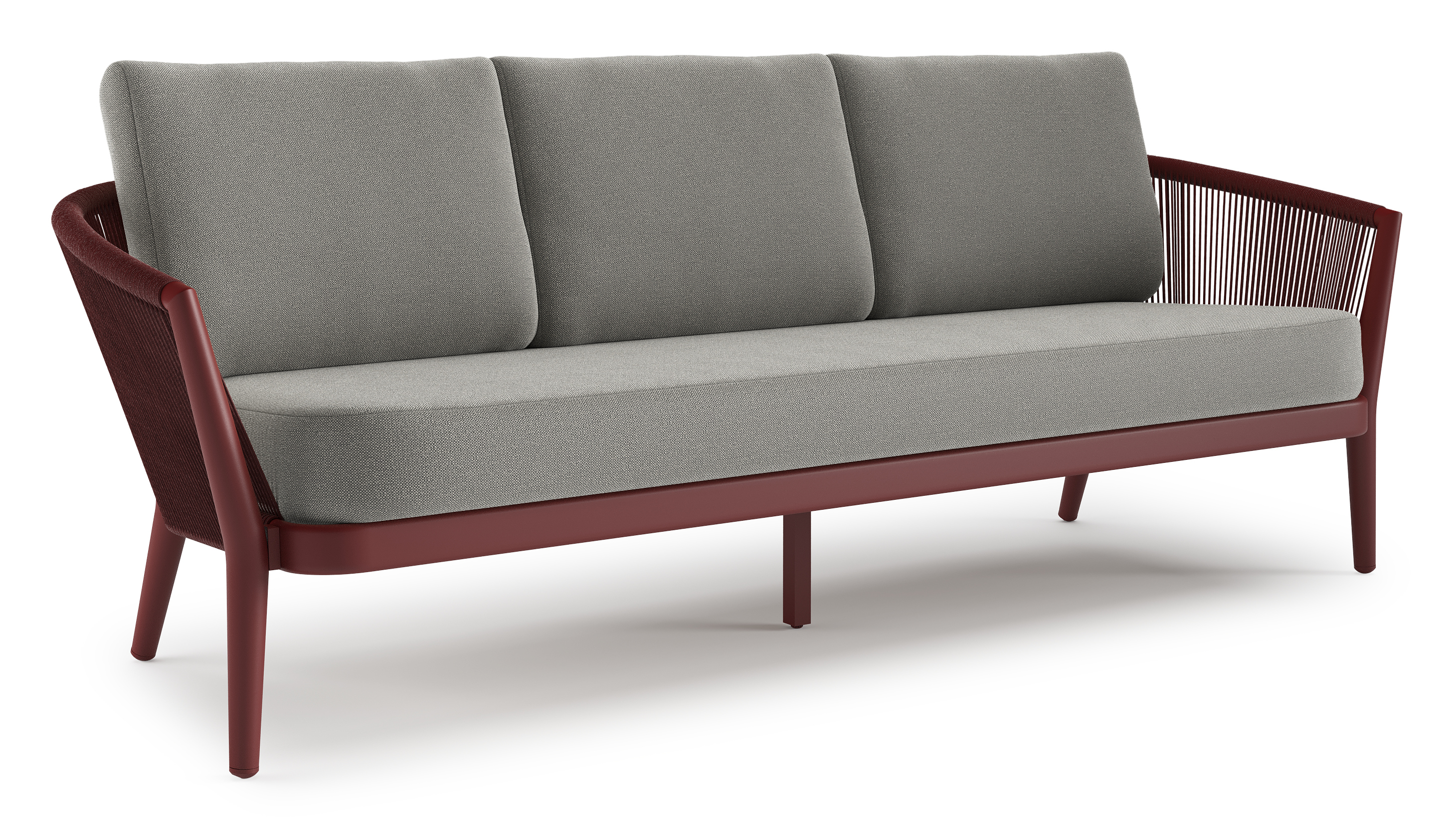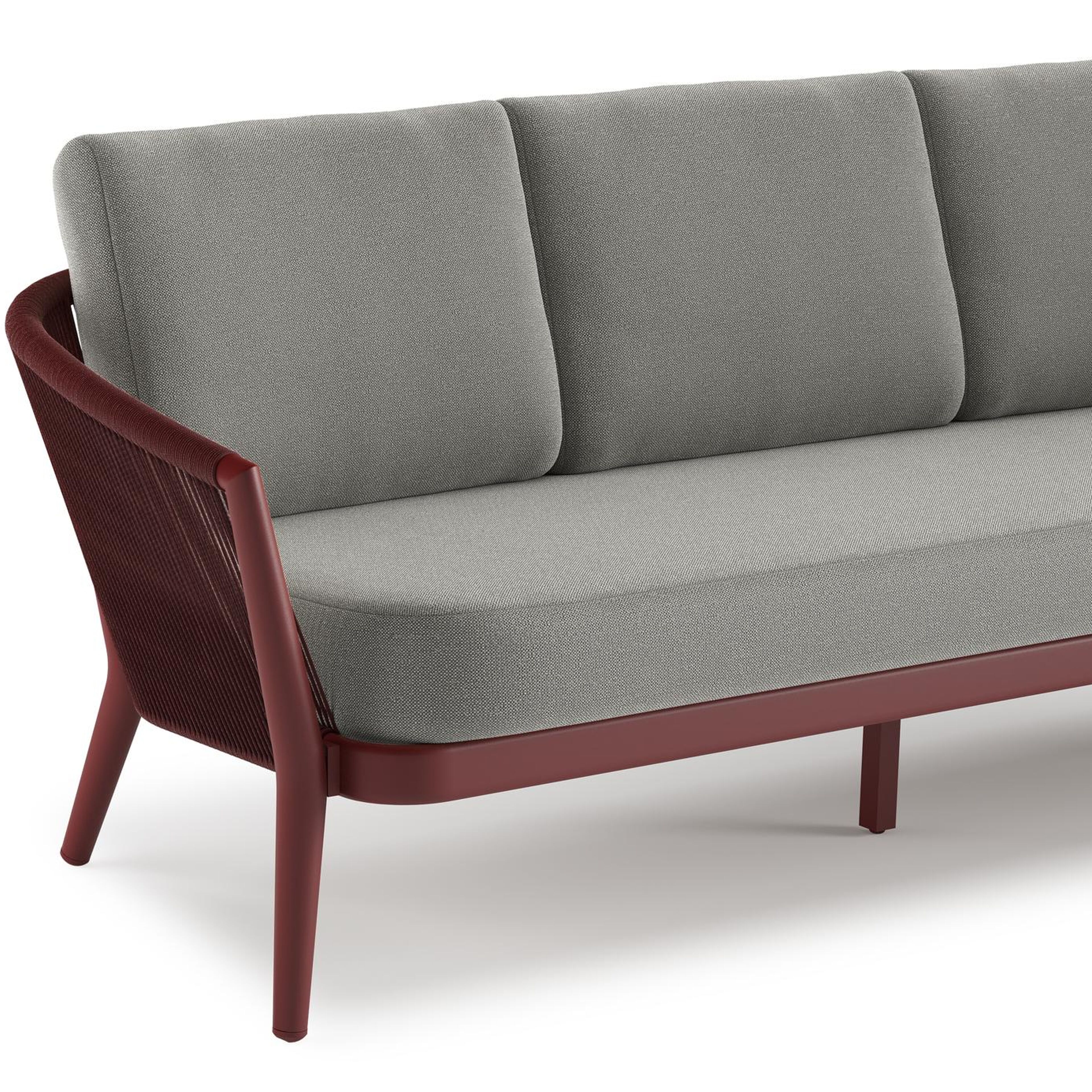 Canapé de jardin Orso en aluminium ruby en corde ronde tissée verticalement ruby et coussins en all weather sunbrella® luxe Savane Zinc | Exterioo mobilier de jardin