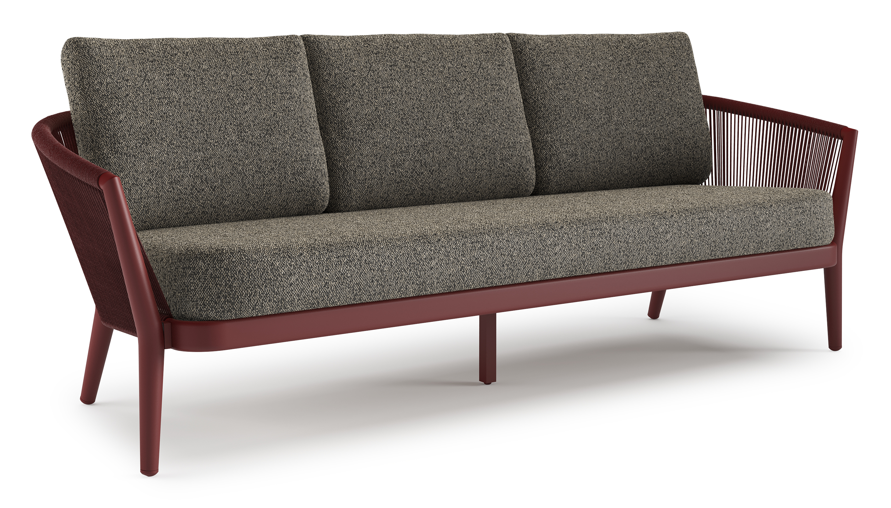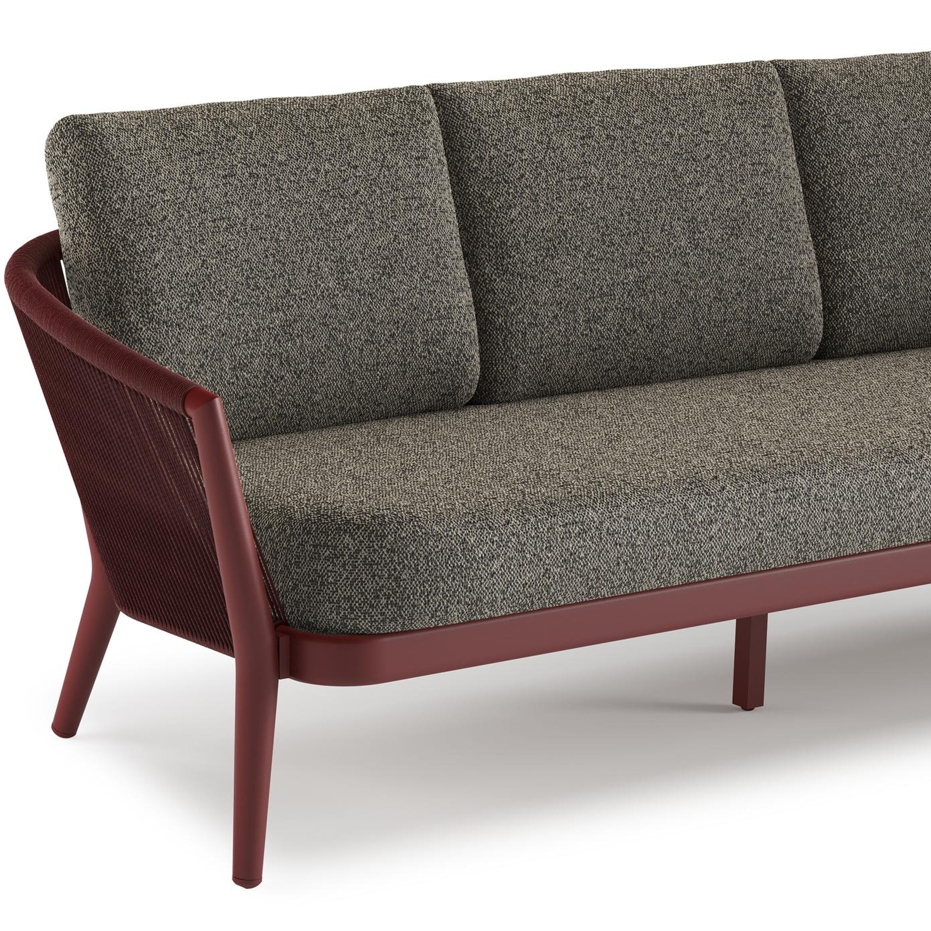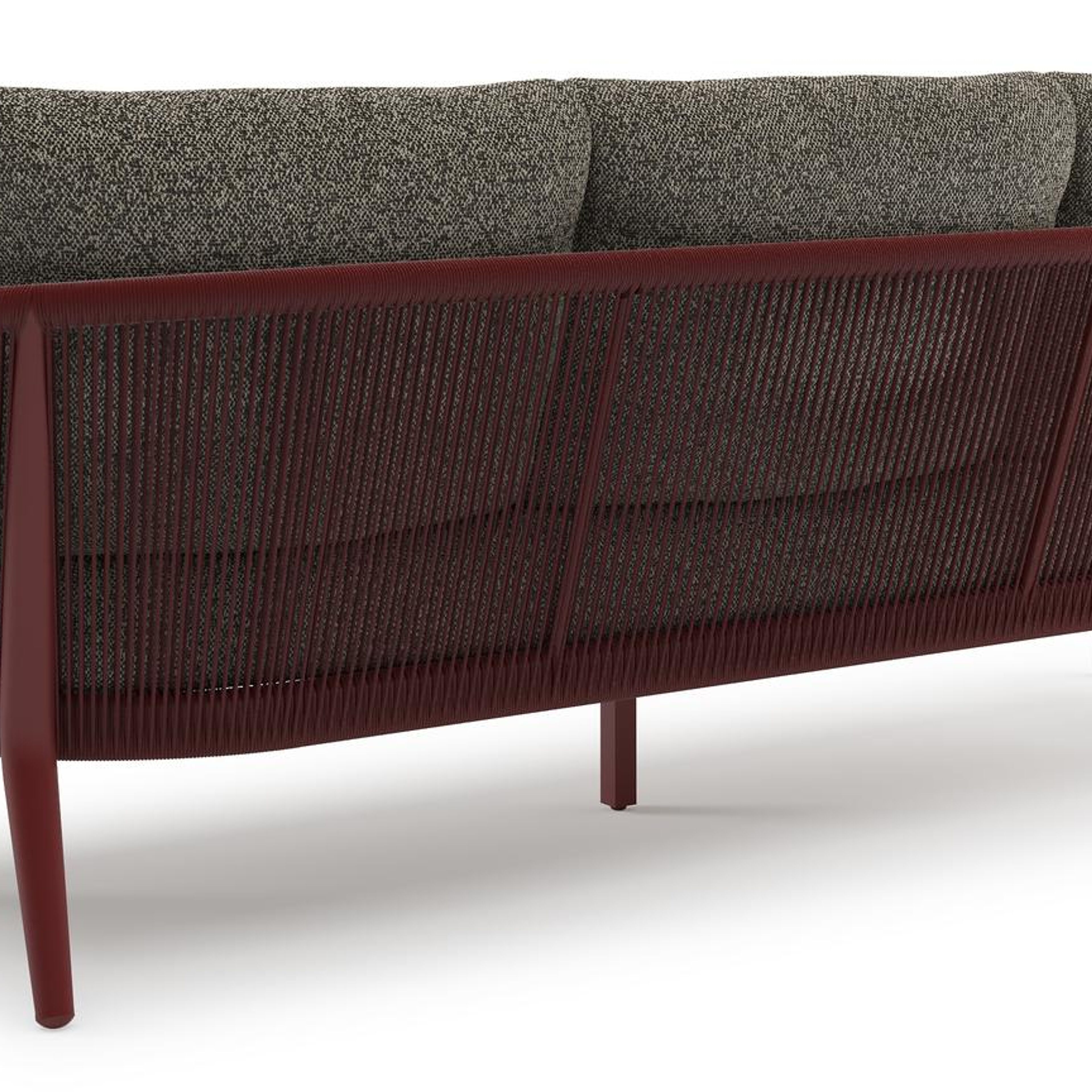 Canapé de jardin Orso en aluminium ruby en corde ronde tissée verticalement ruby et coussins en all weather cosytica Marbella Tunder | Exterioo mobilier de jardin